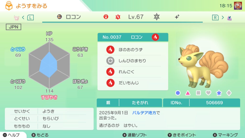 全てのゲット対象個体が”自己産かつゴージャスボール入り”の場合、達成率の横に「★」が付く。