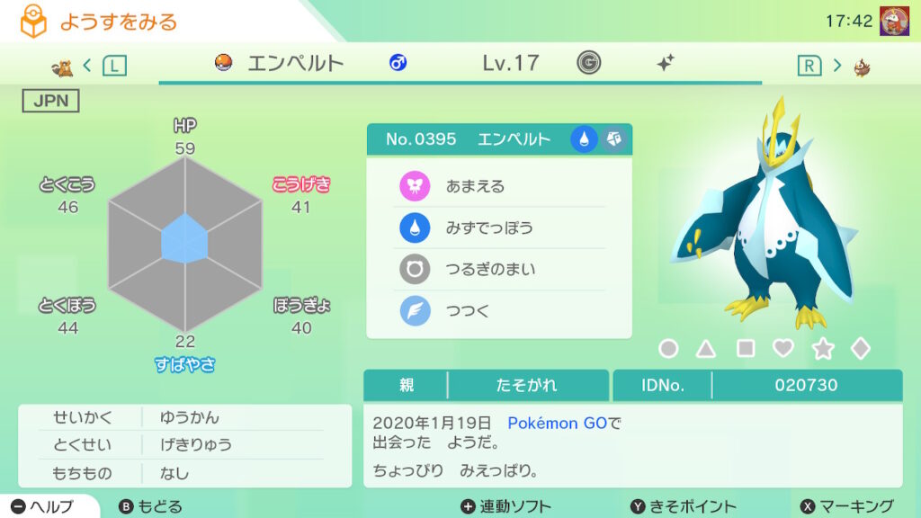 - 色違い(♂)がポケモンGO産のためゴージャスボールではない。