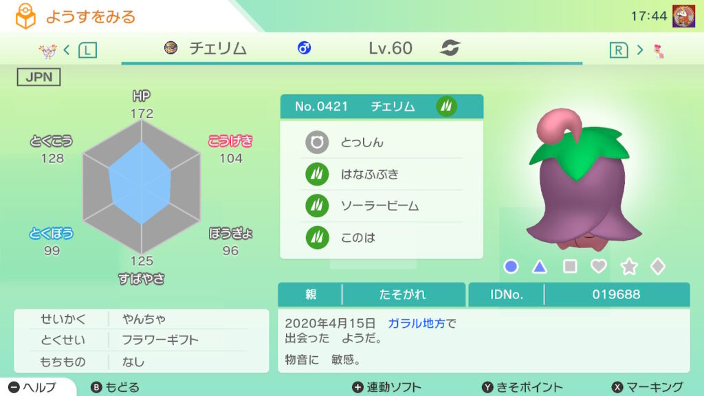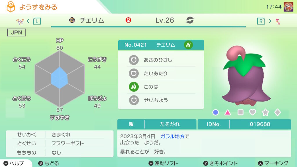 図鑑No.421 『チェリム』の色違いの見分け方をソフト別に解説