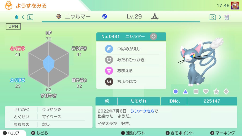 - 色違い(♀)を未所持。
