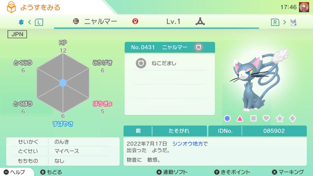 - 色違い(♂)を未所持。