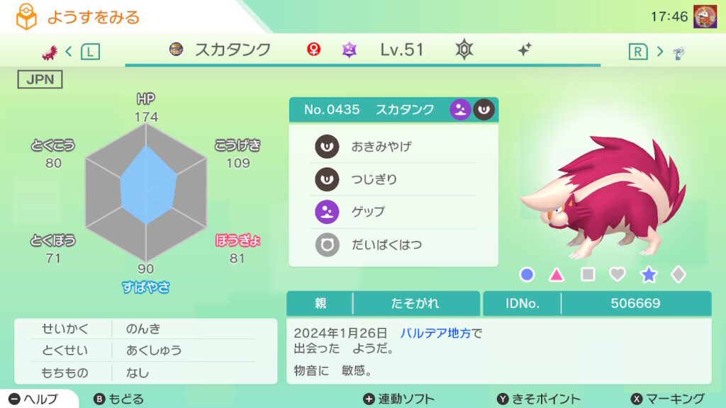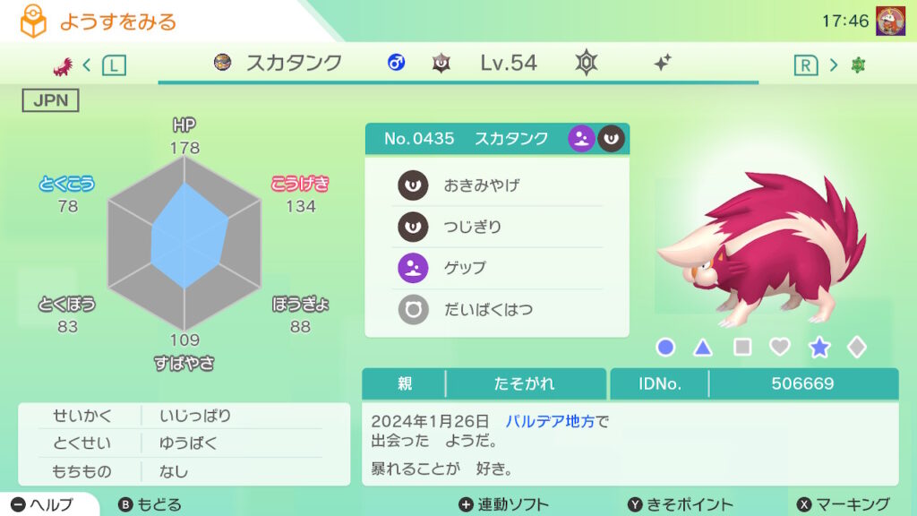 全てのゲット対象個体が”自己産かつゴージャスボール入り”の場合、達成率の横に「★」が付く。