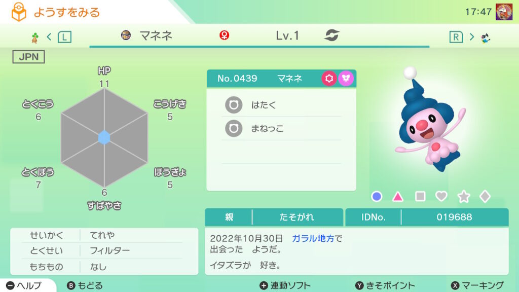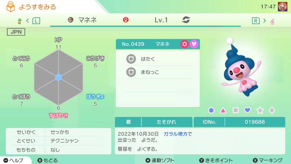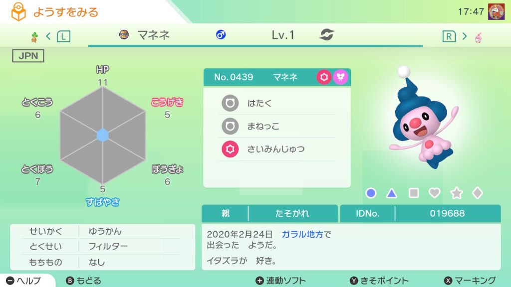 図鑑No.439 『マネネ』の色違いの見分け方をソフト別に解説