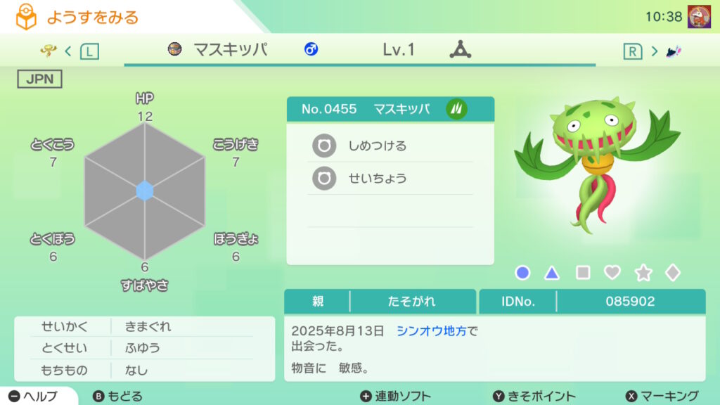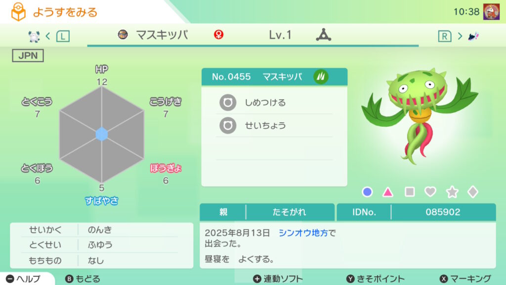 図鑑No.455 『マスキッパ』の色違いの見分け方をソフト別に解説
