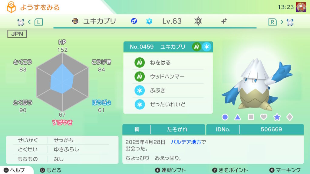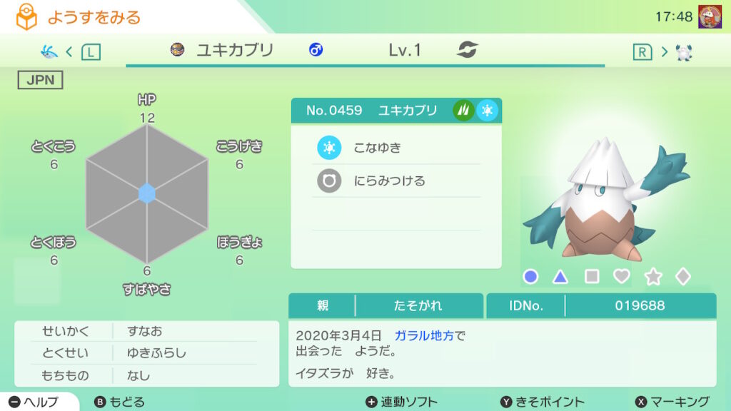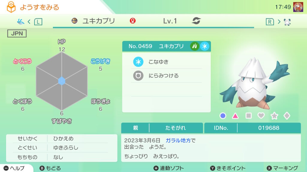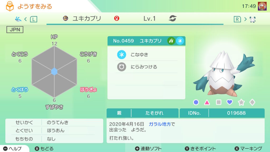 図鑑No.459 『ユキカブリ』の色違いの見分け方をソフト別に解説