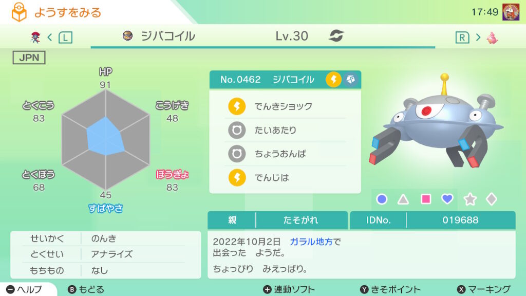 図鑑No.462 『ジバコイル』の色違いの見分け方をソフト別に解説