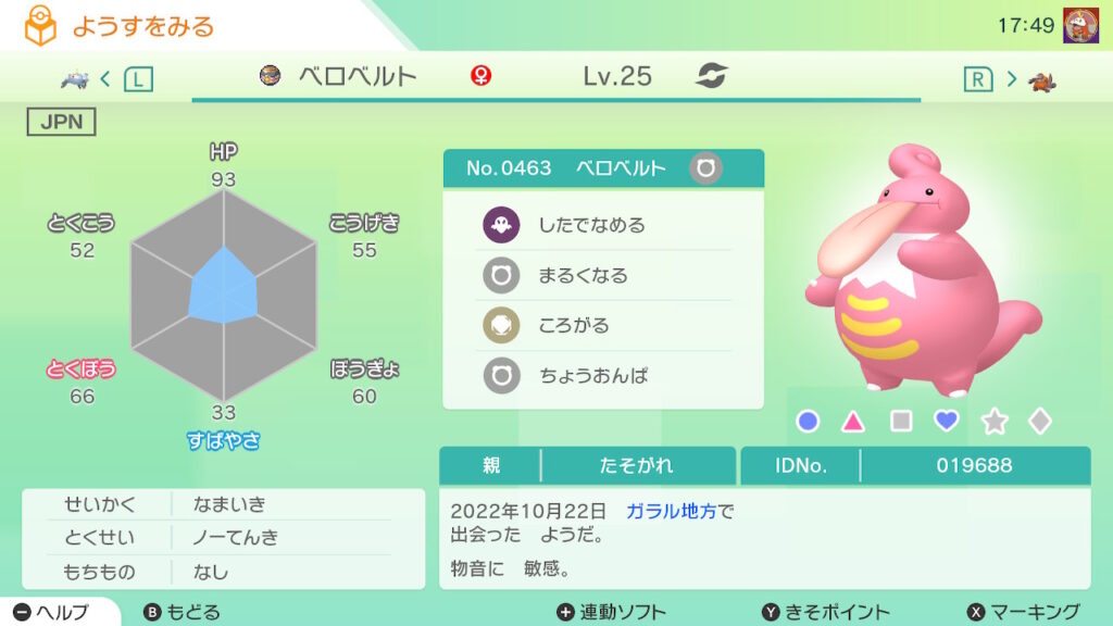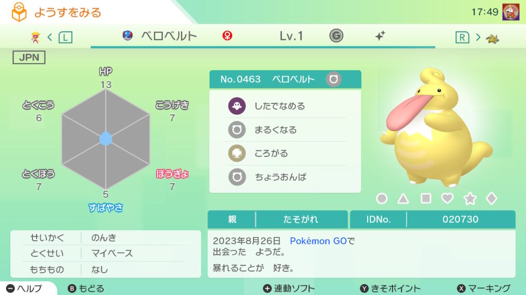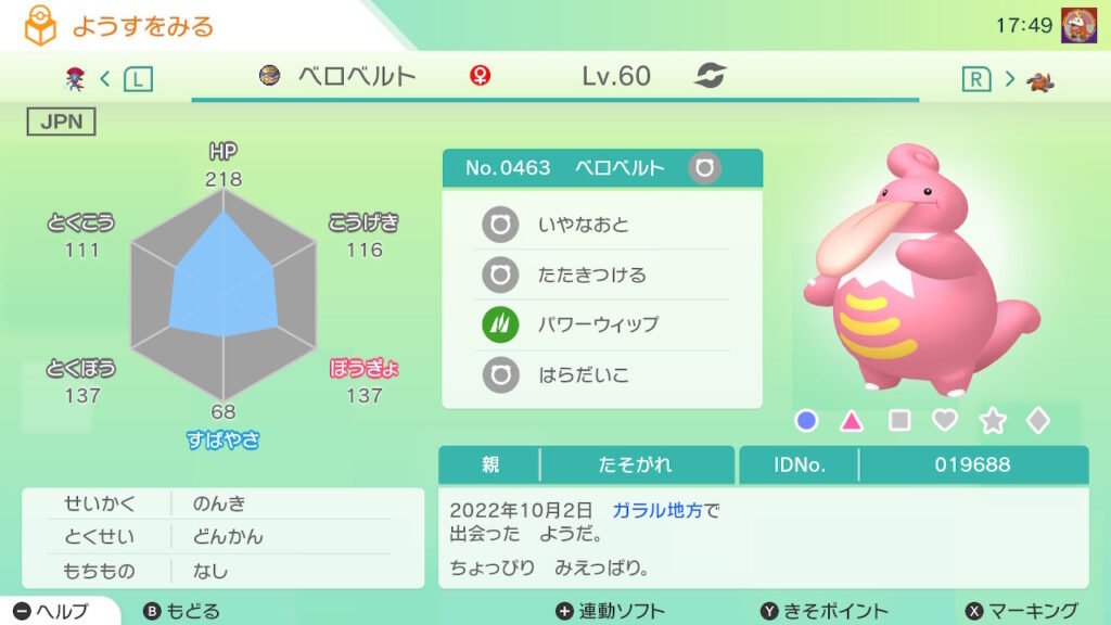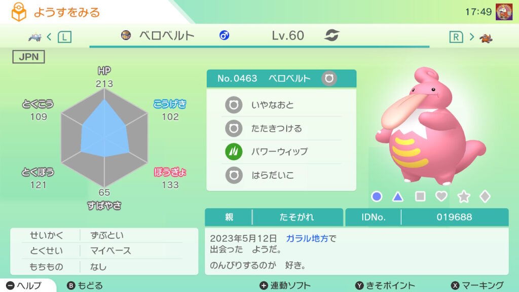 図鑑No.463 『ベロベルト』の色違いの見分け方をソフト別に解説