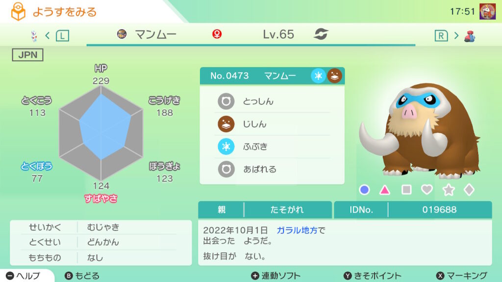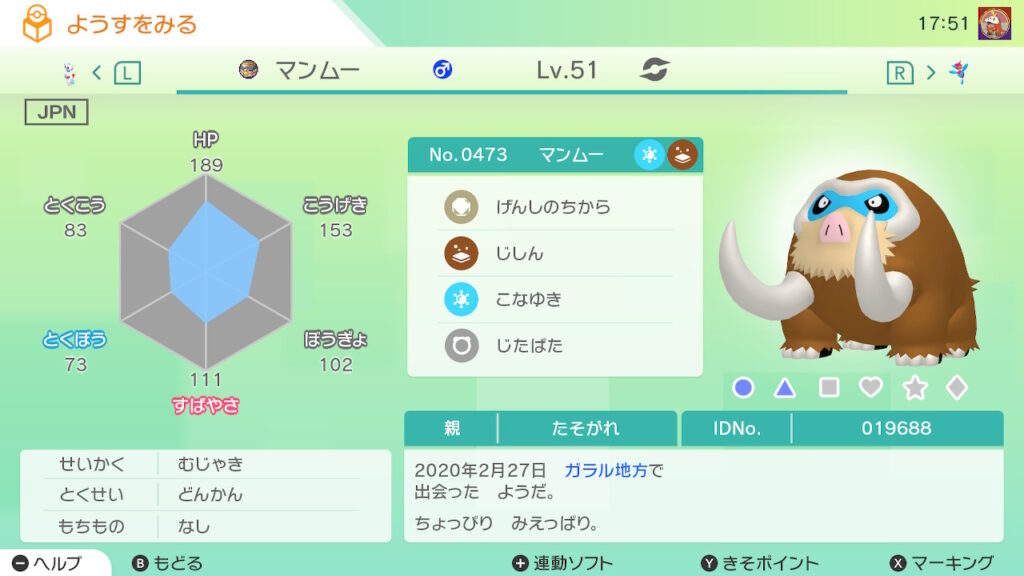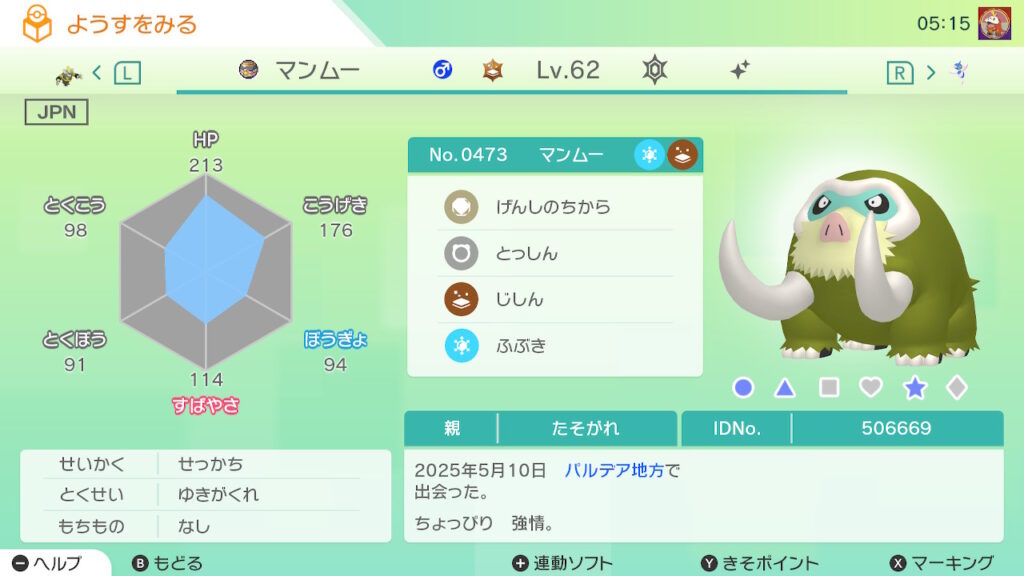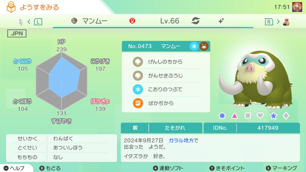 図鑑No.473 『マンムー』の色違いの見分け方をソフト別に解説