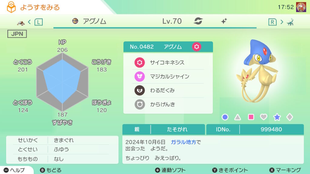 全てのゲット対象個体が”自己産かつゴージャスボール入り”の場合、達成率の横に「★」が付く。