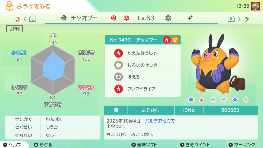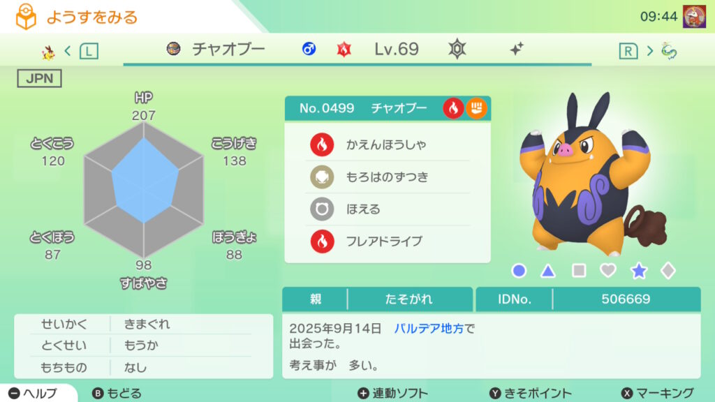 全てのゲット対象個体が”自己産かつゴージャスボール入り”の場合、達成率の横に「★」が付く。