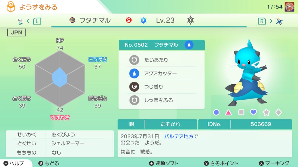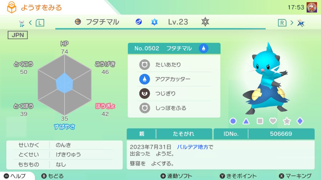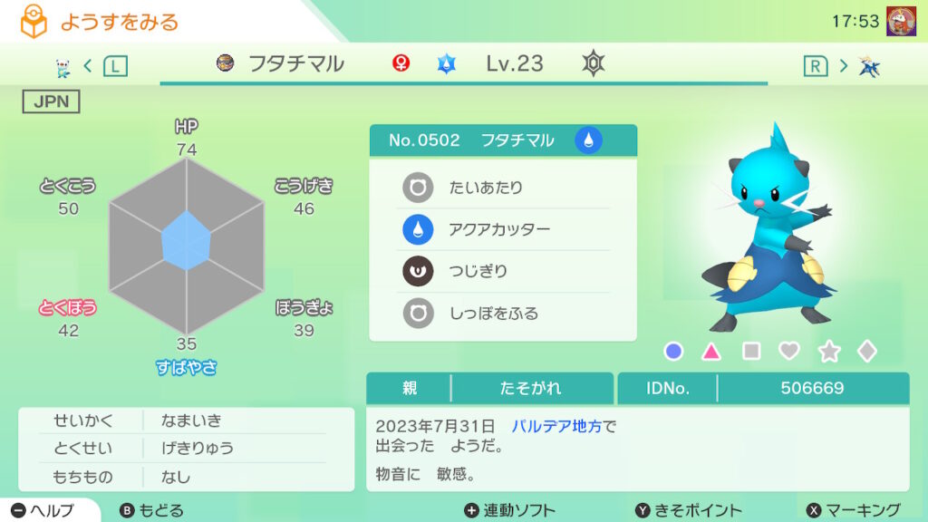 - 色違い(♂)がポケモンGO産のためゴージャスボールではない。