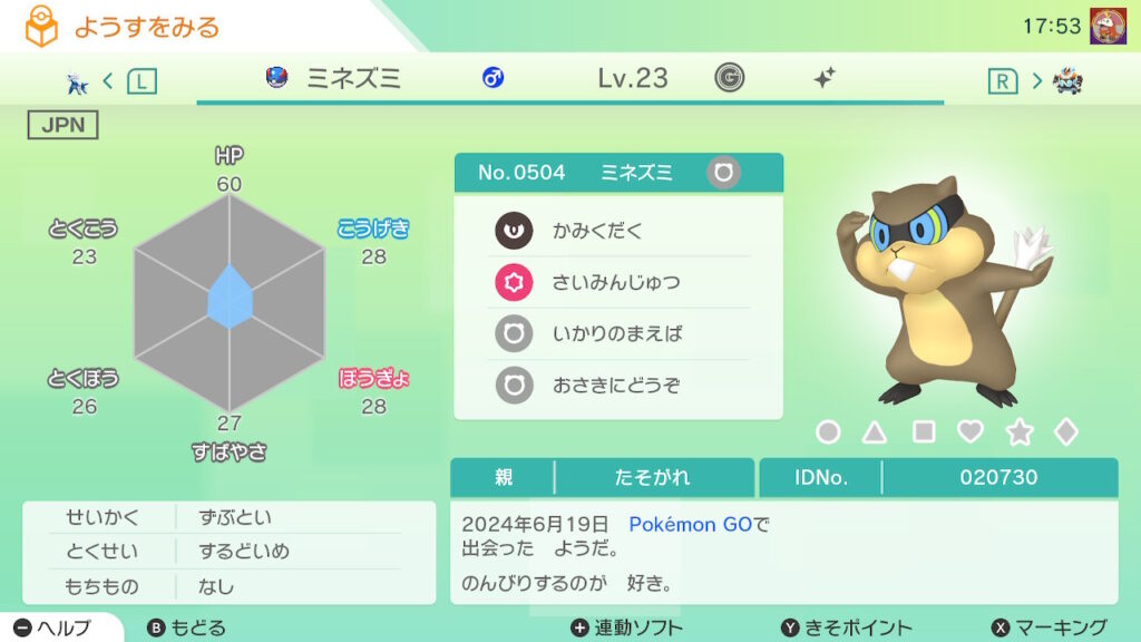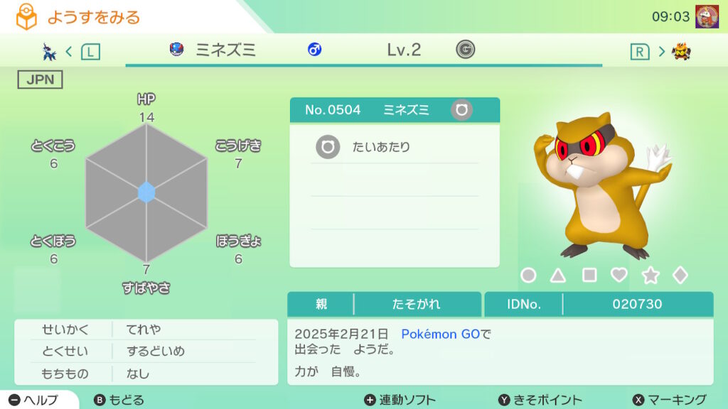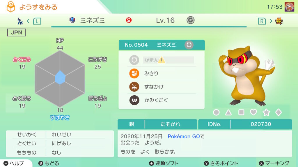 図鑑No.504 『ミネズミ』の色違いの見分け方をソフト別に解説(準備中)