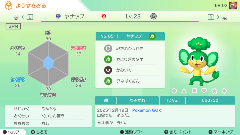 対象の個体をゲットした場合達成率がアップする。(おや名、ボールの指定は無し)