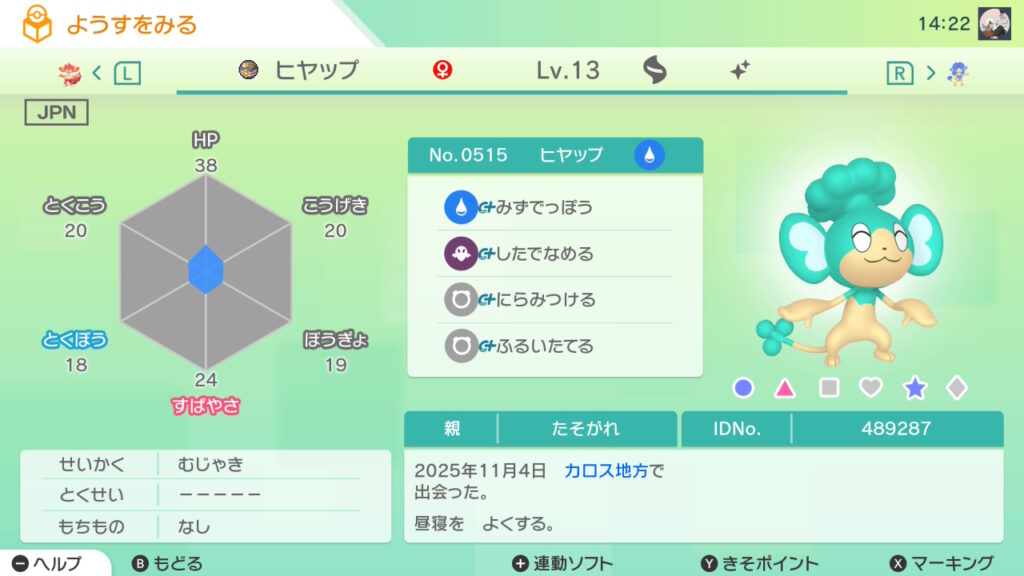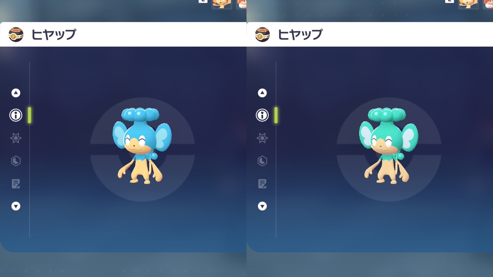 図鑑No.515 『ヒヤップ』の色違いの見分け方をソフト別に解説(準備中)