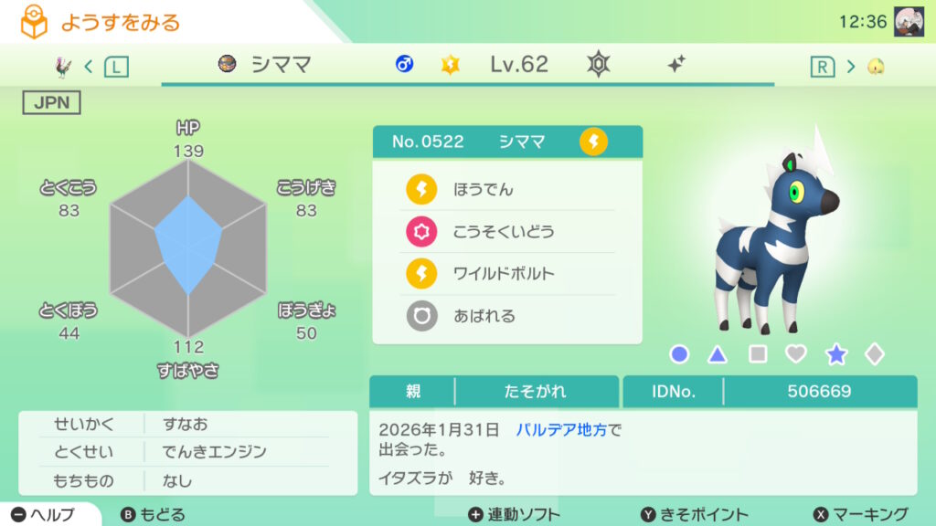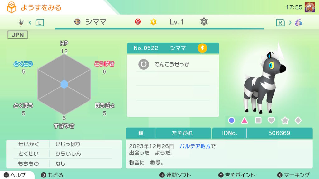 図鑑No.522 『シママ』の色違いの見分け方をソフト別に解説