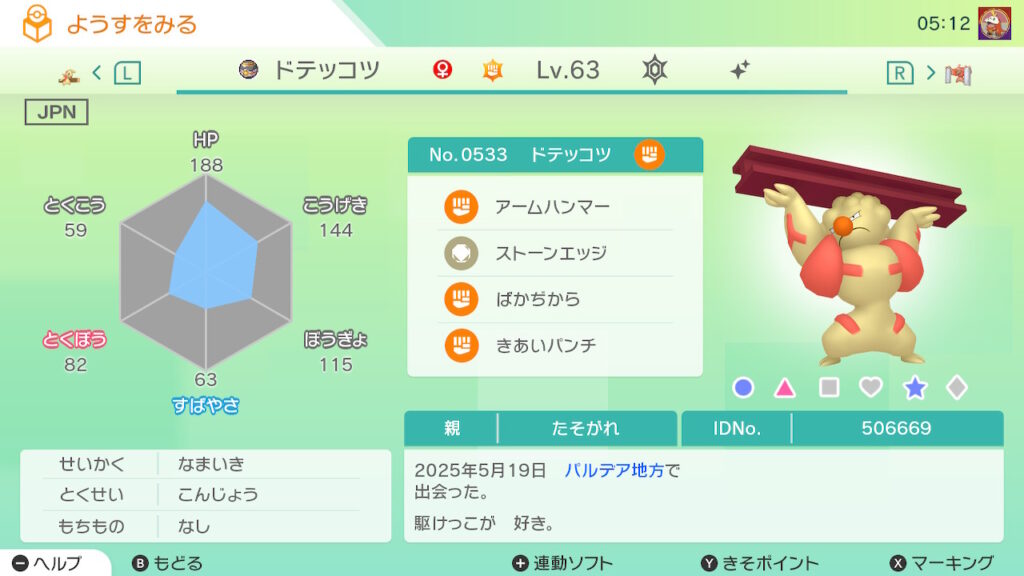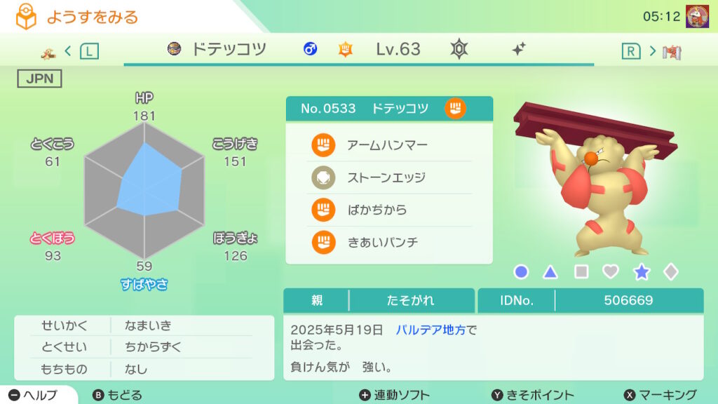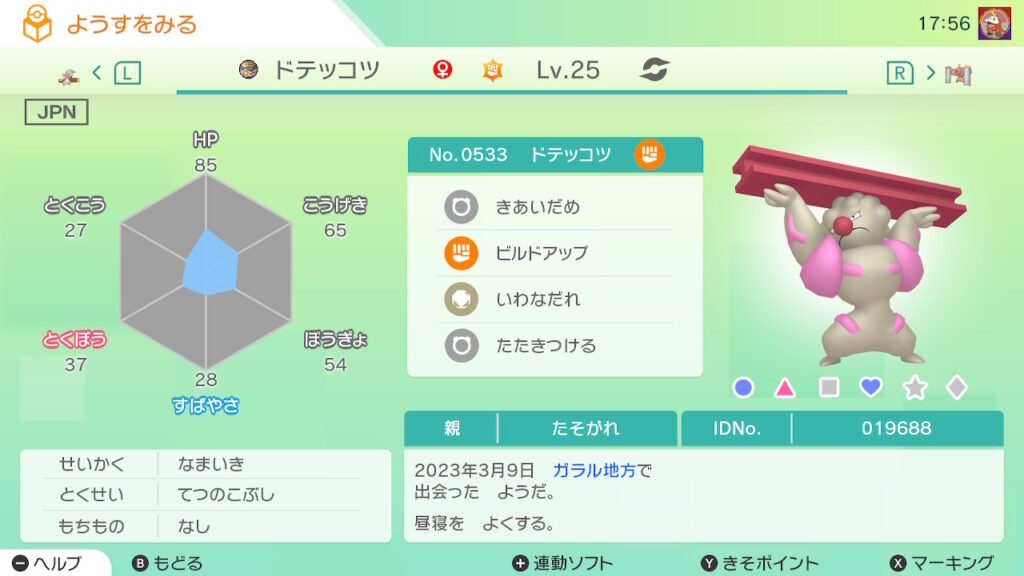 図鑑No.533 『ドテッコツ』の色違いの見分け方をソフト別に解説