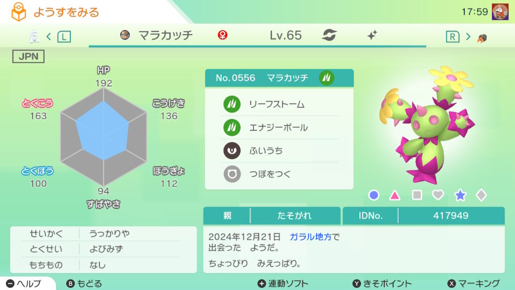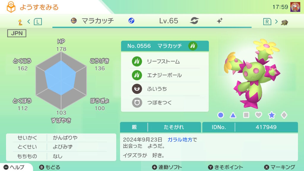 対象の個体をゲットした場合達成率がアップする。(おや名、ボールの指定は無し)