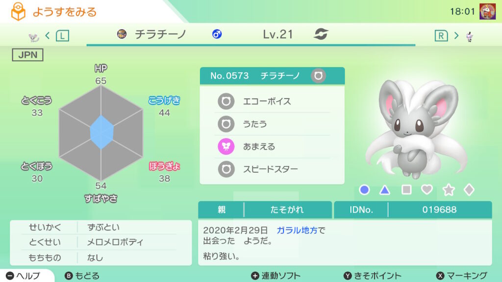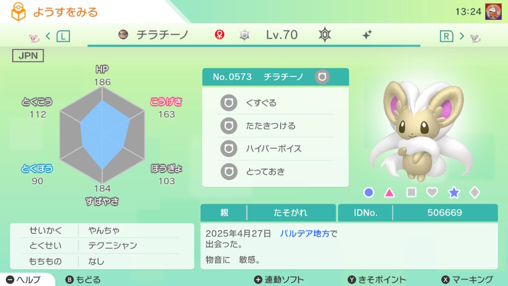 図鑑No.573 『チラチーノ』の色違いの見分け方をソフト別に解説