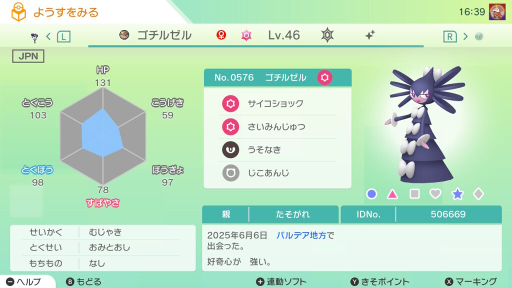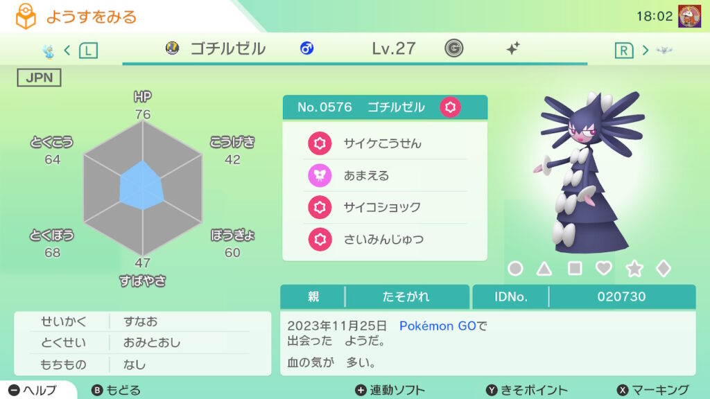- 色違い(♂)がポケモンGO産のためゴージャスボールではない。