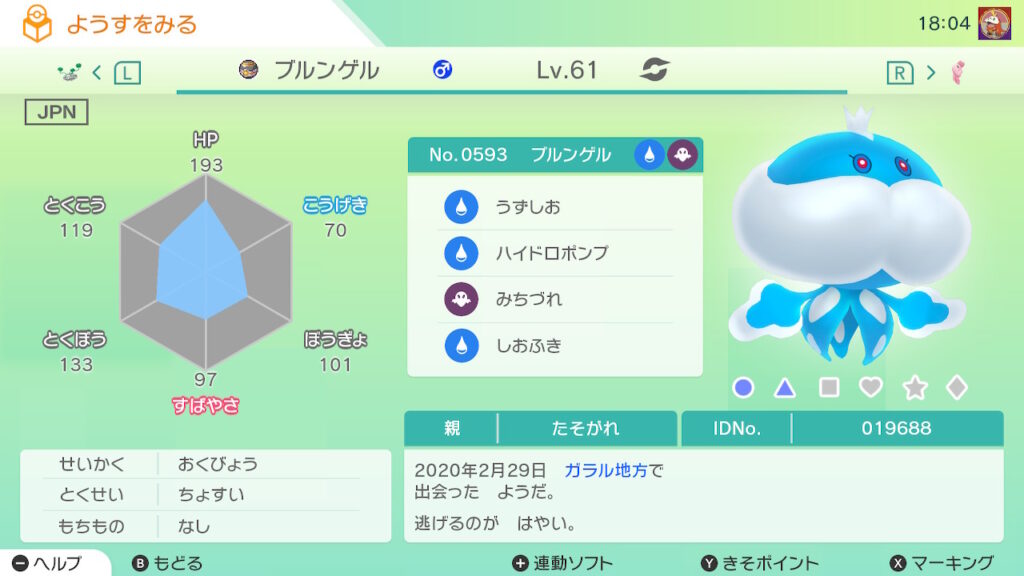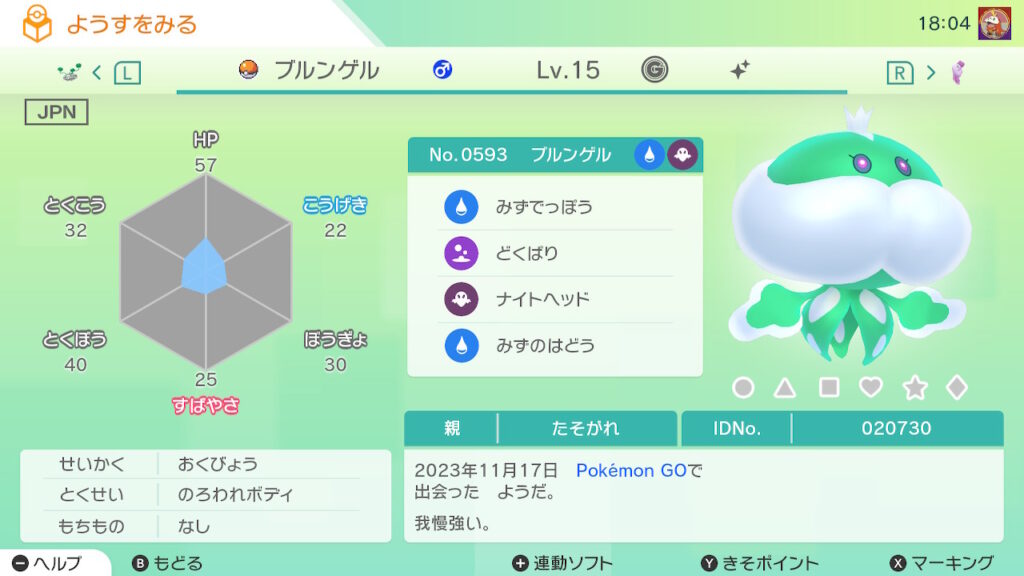 - 色違い(♂)がポケモンGO産のためゴージャスボールではない。
