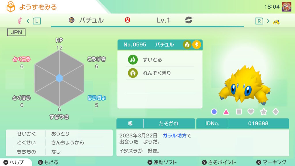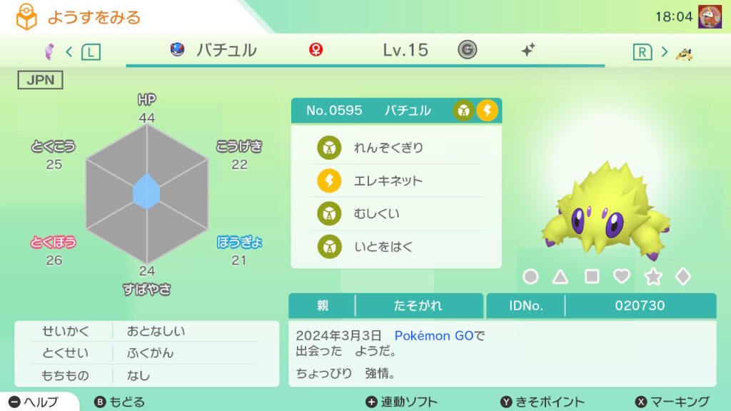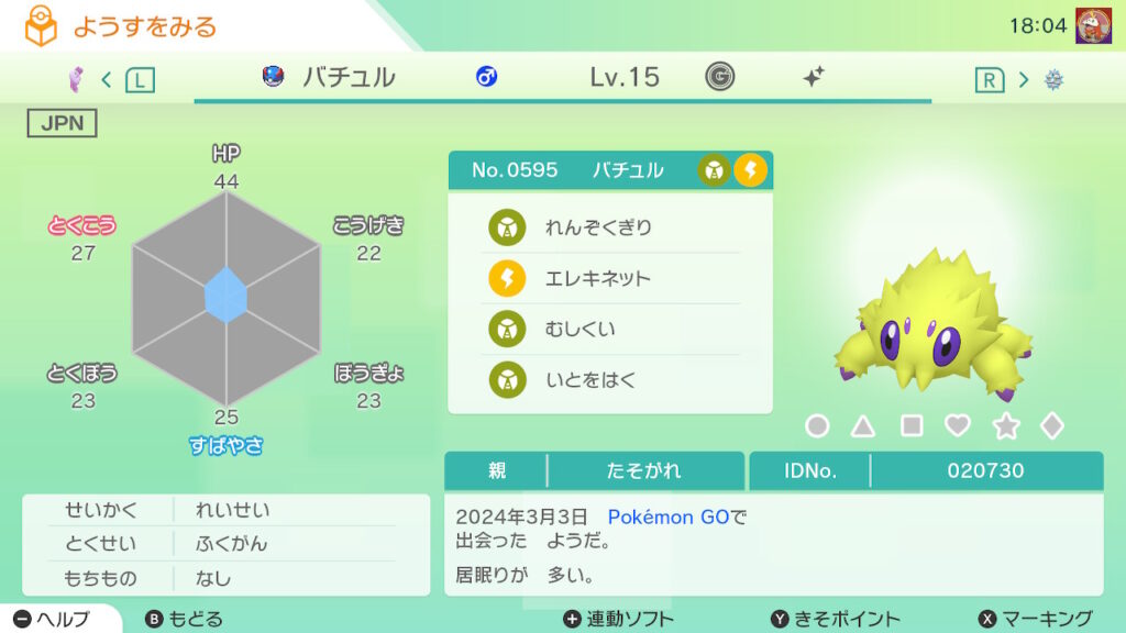 - 色違い(♀)がポケモンGO産のためゴージャスボールではない。