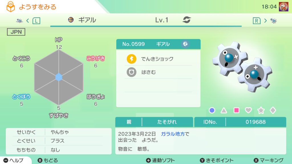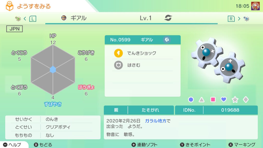 図鑑No.599 『ギアル』の色違いの見分け方をソフト別に解説