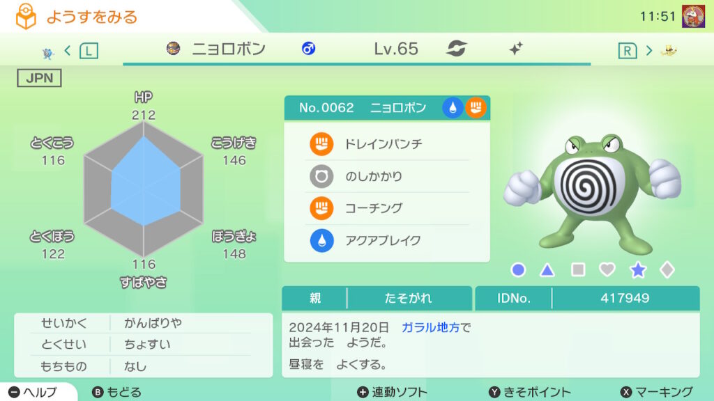 対象の個体をゲットした場合達成率がアップする。(おや名、ボールの指定は無し)