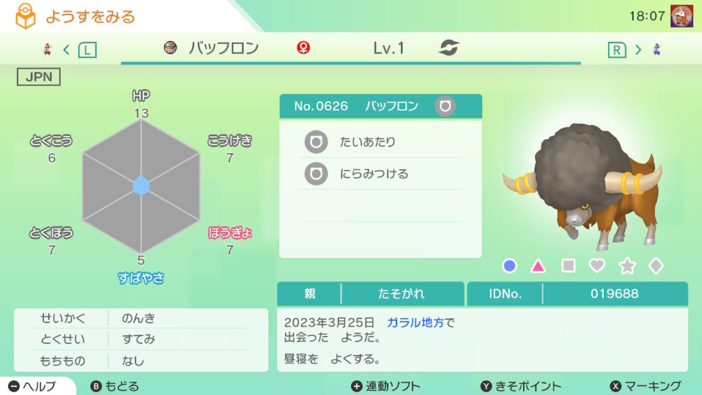 図鑑No.626 『バッフロン』の色違いの見分け方をソフト別に解説