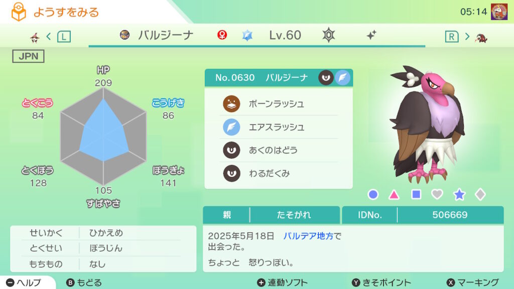 全てのゲット対象個体が”自己産かつゴージャスボール入り”の場合、達成率の横に「★」が付く。