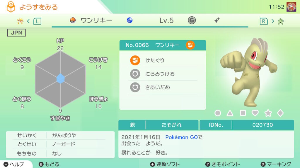 - 色違い(♂)がポケモンGO産のためゴージャスボールではない。