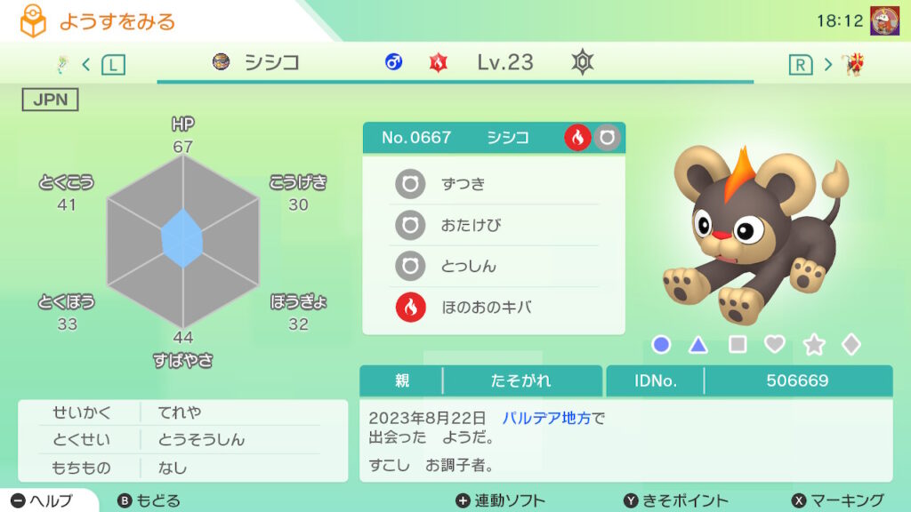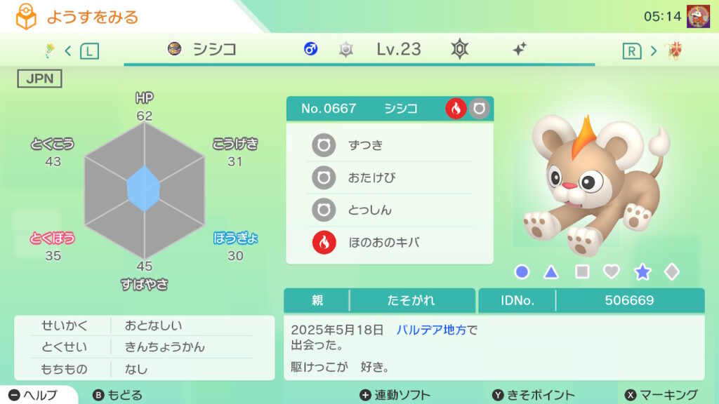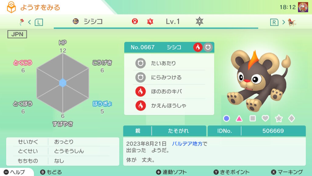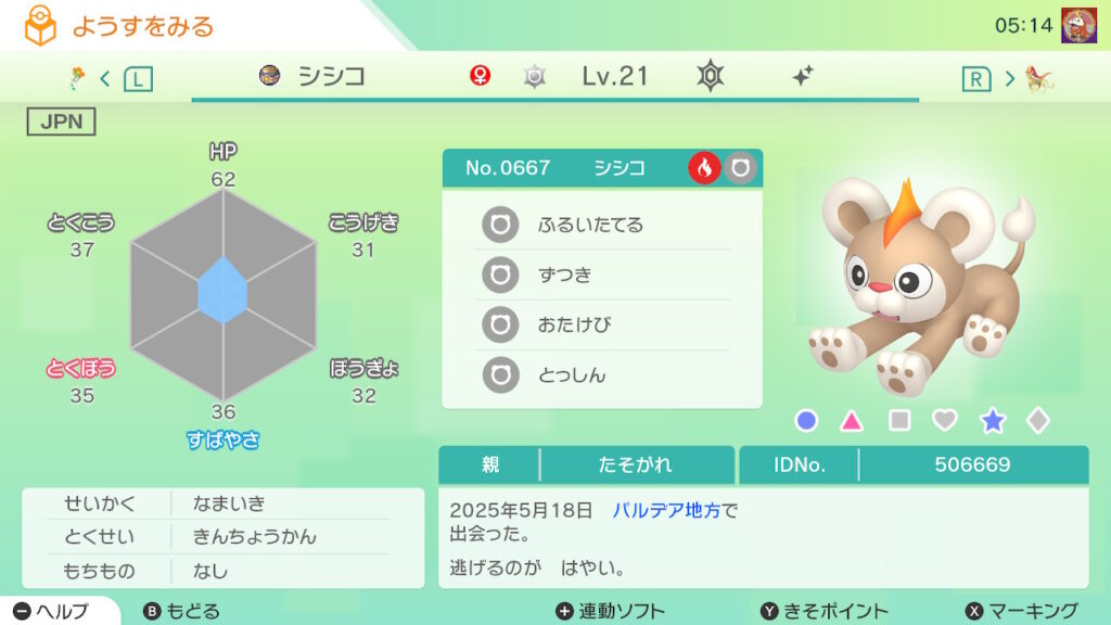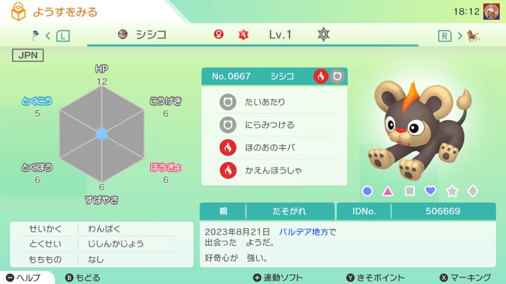 図鑑No.667 『シシコ』の色違いの見分け方をソフト別に解説