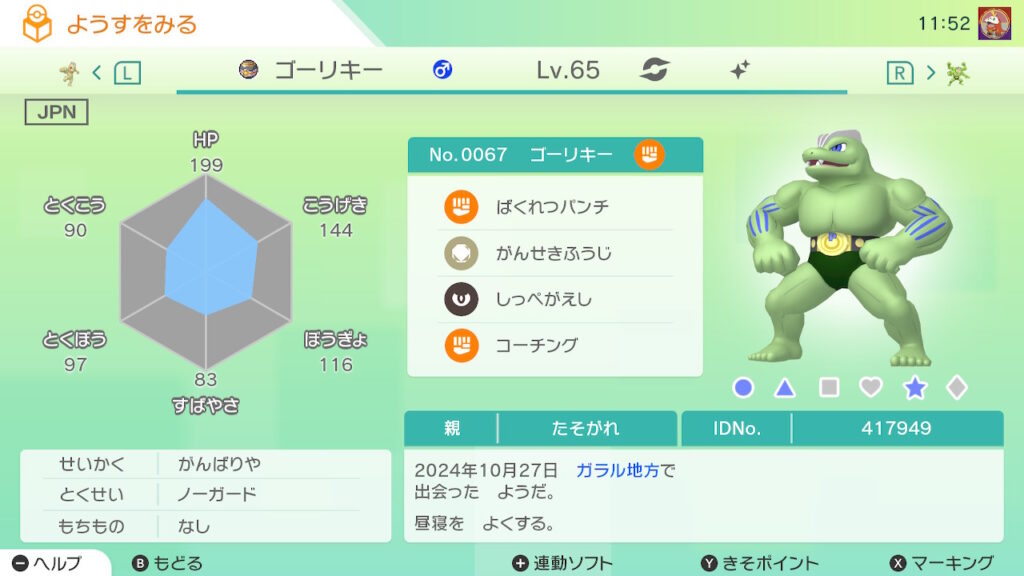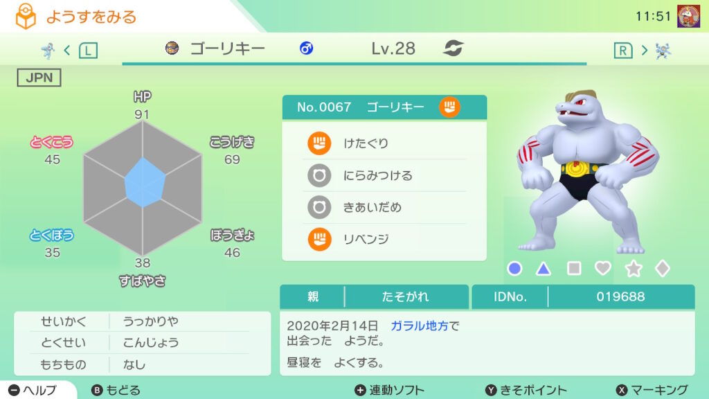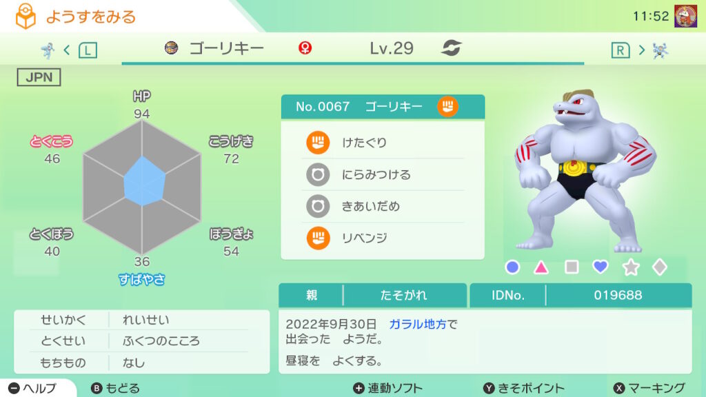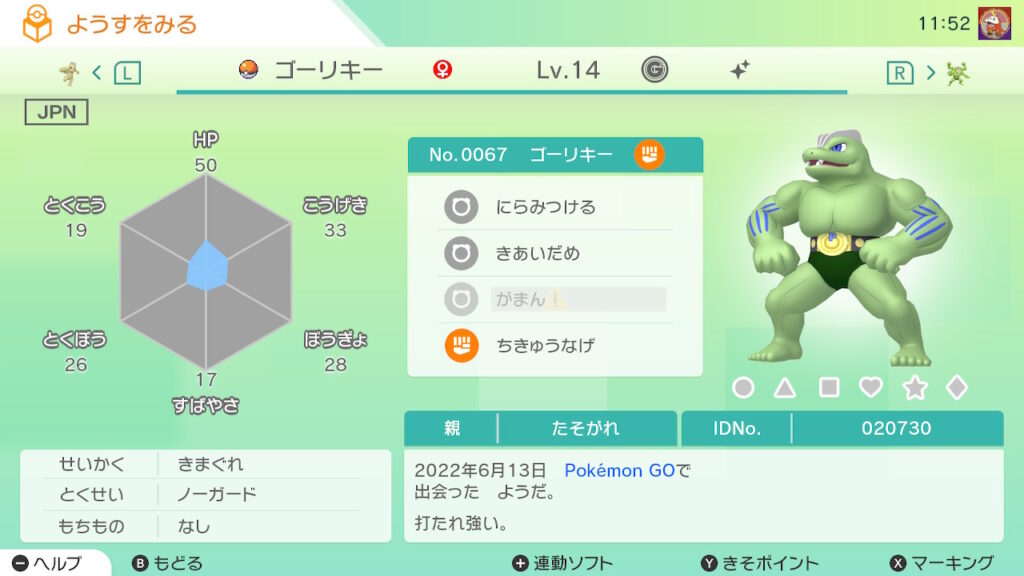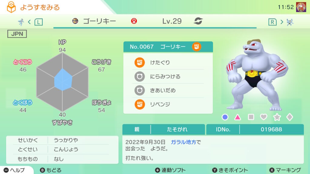 - 色違い(♀)がポケモンGO産のためゴージャスボールではない。
