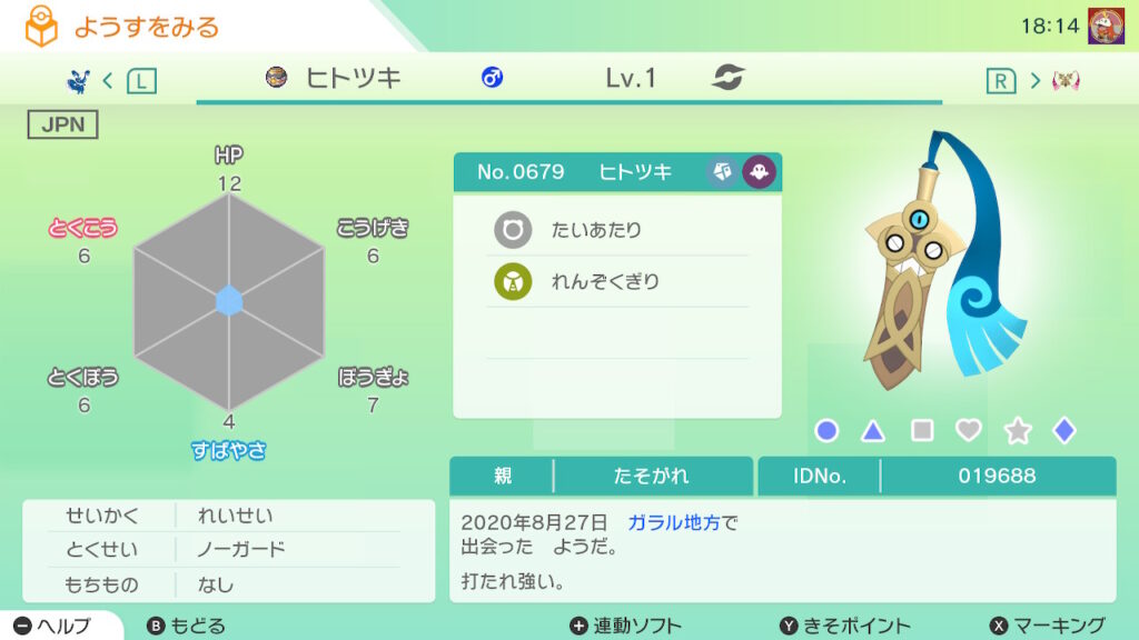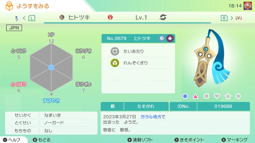 図鑑No.679 『ヒトツキ』の色違いの見分け方をソフト別に解説