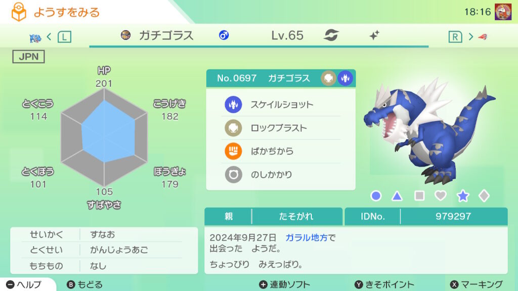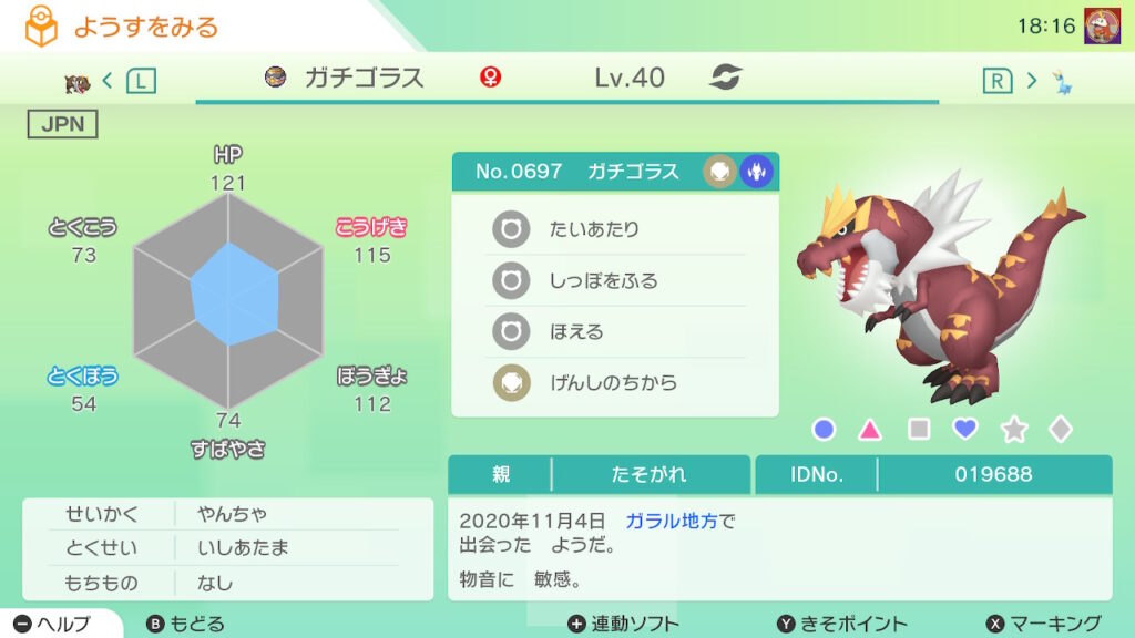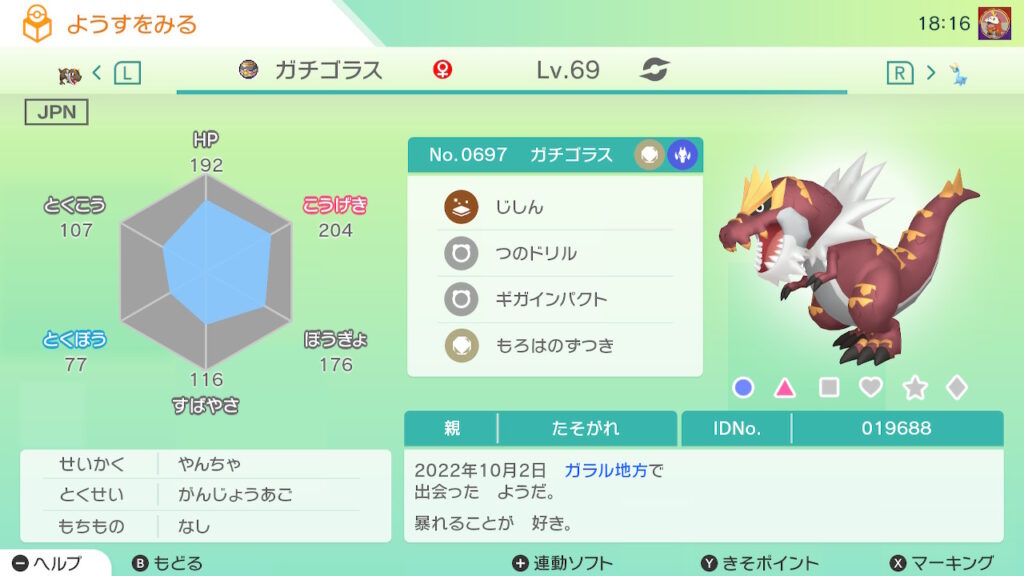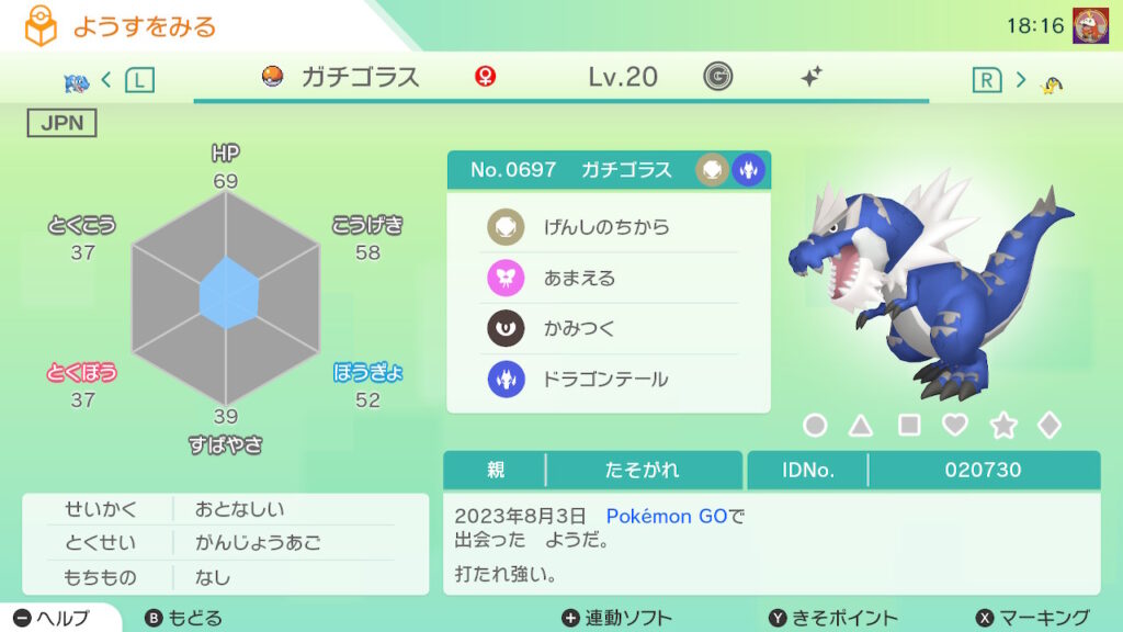 - 色違い(♀)がポケモンGO産のためゴージャスボールではない。