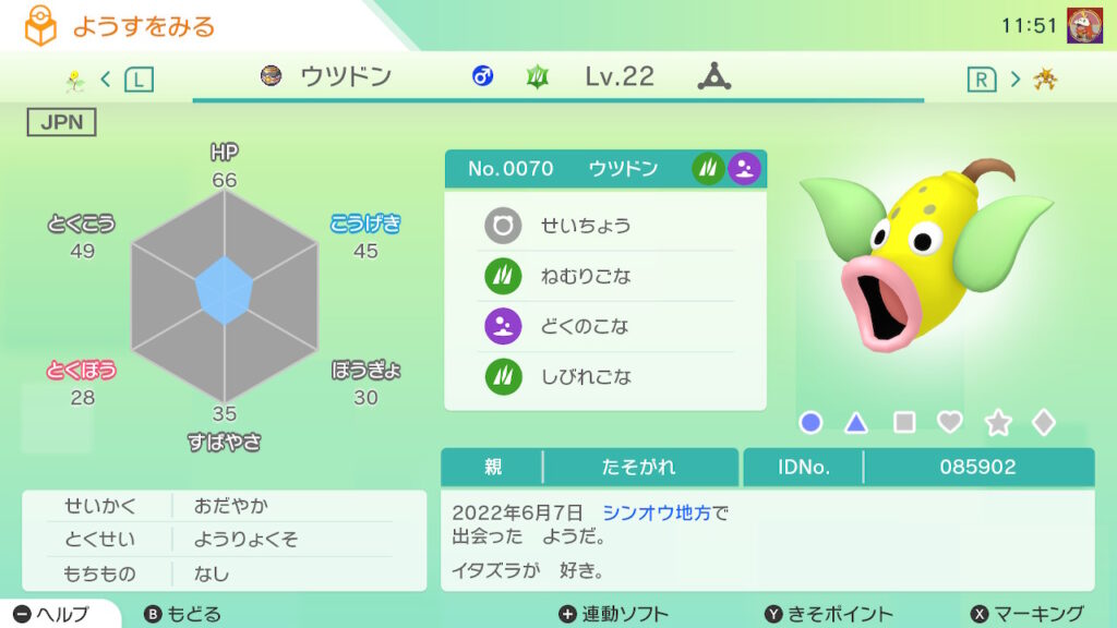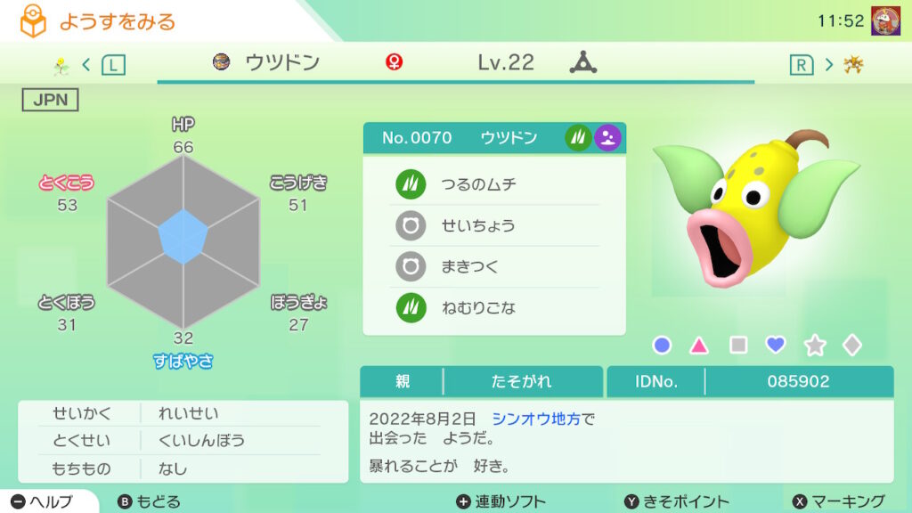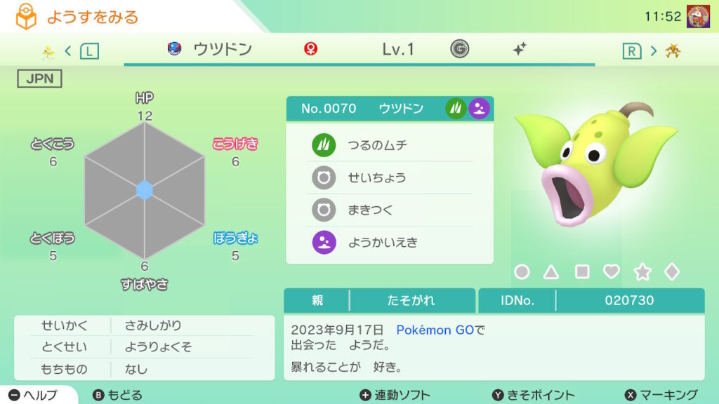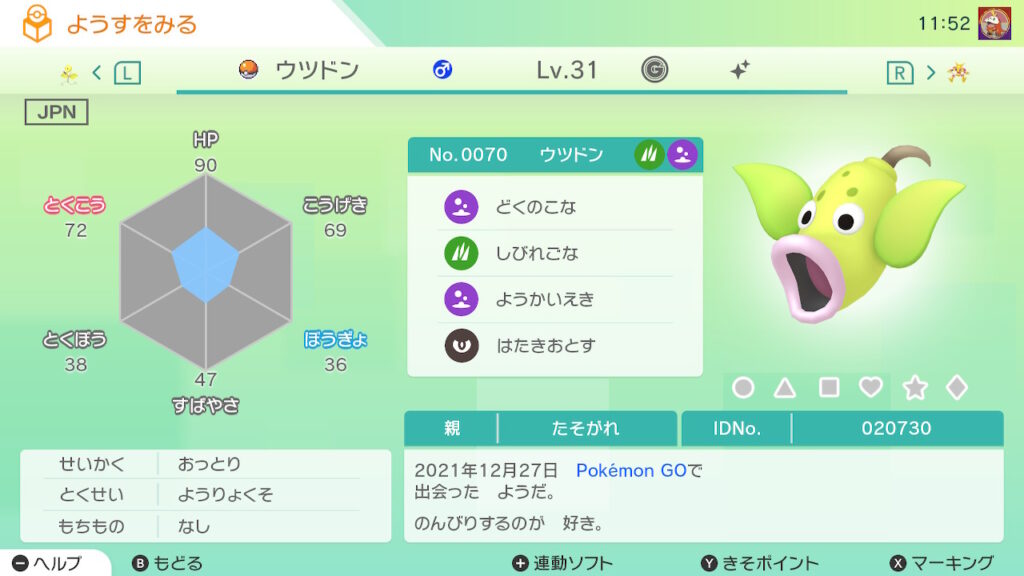 - 色違い(♀)がポケモンGO産のためゴージャスボールではない。