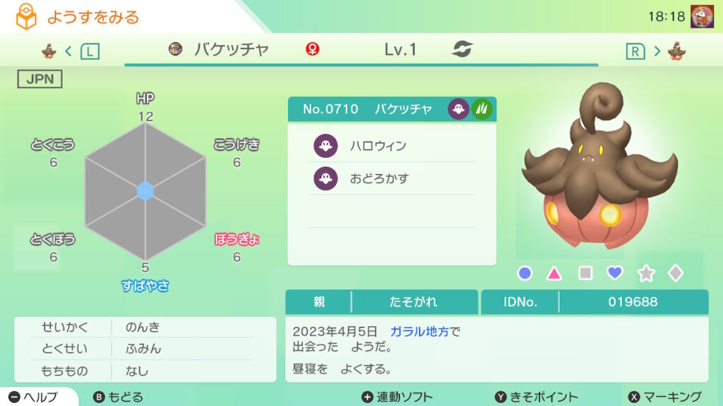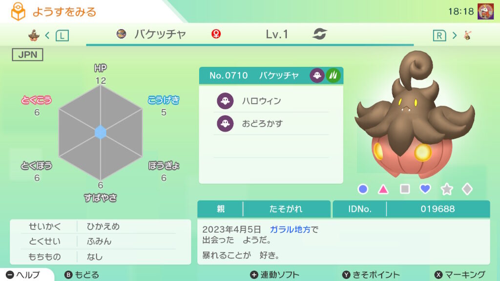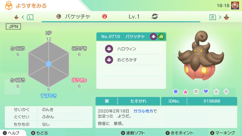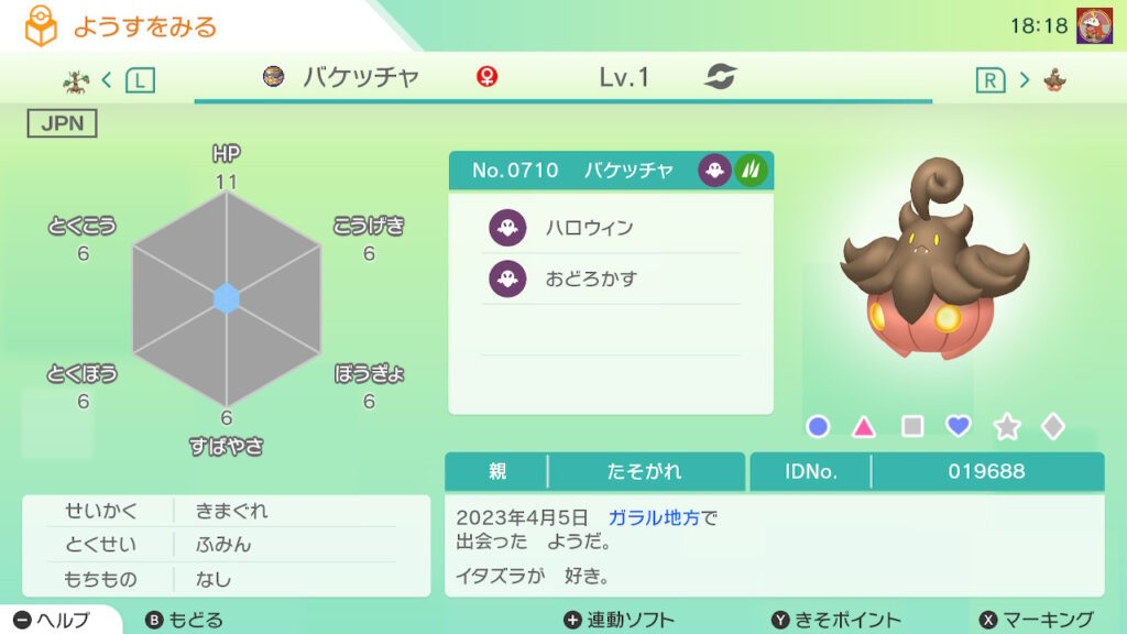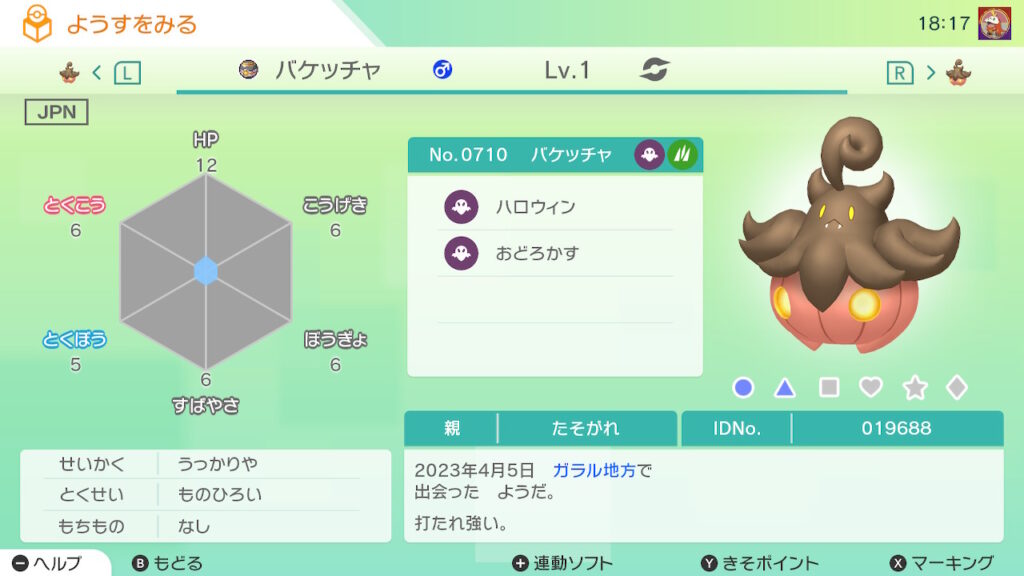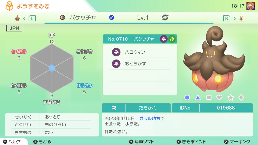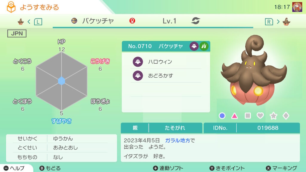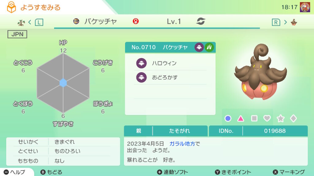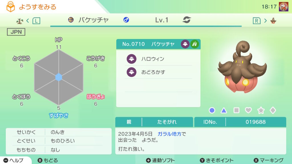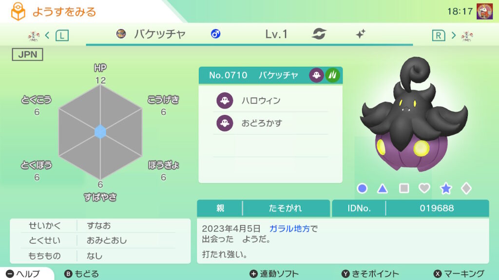 図鑑No.710 『バケッチャ』の色違いの見分け方をソフト別に解説