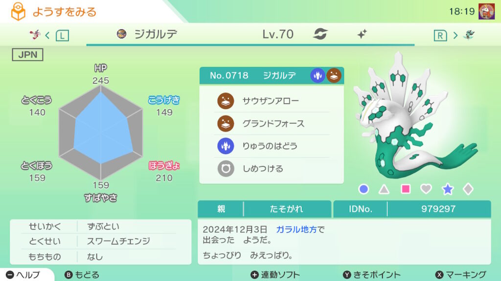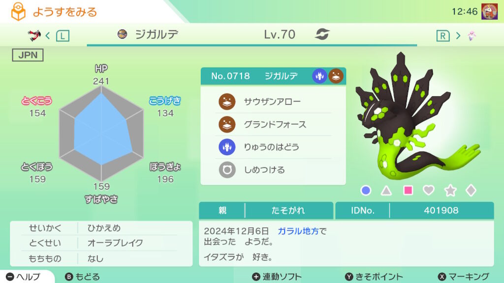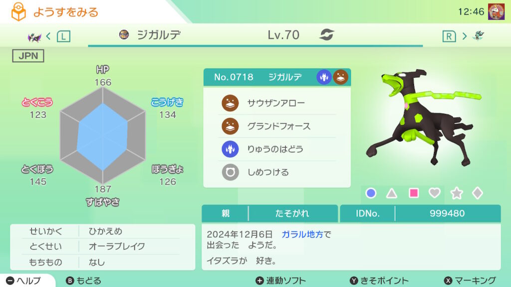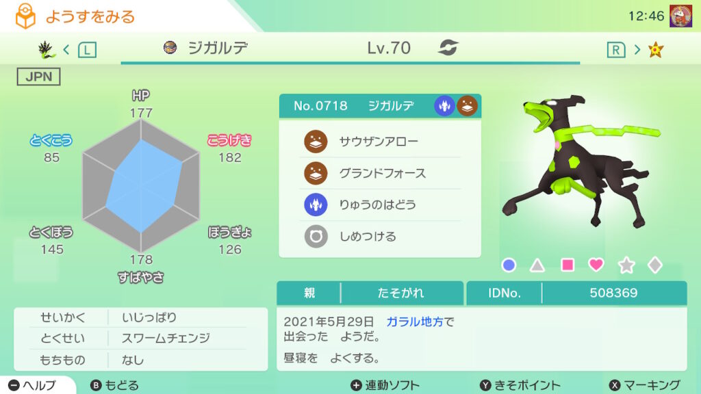 全てのゲット対象個体が”自己産かつゴージャスボール入り”の場合、達成率の横に「★」が付く。