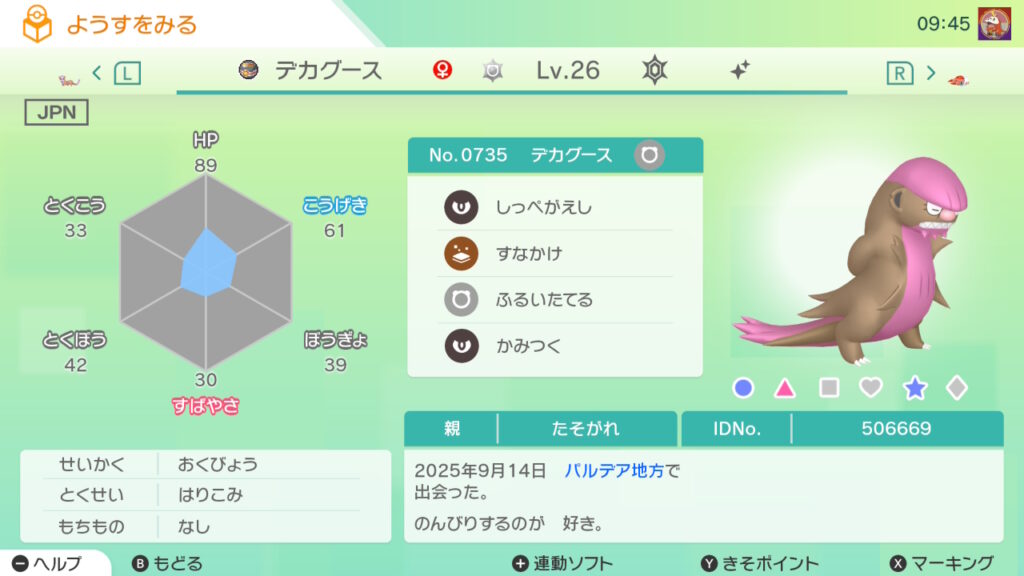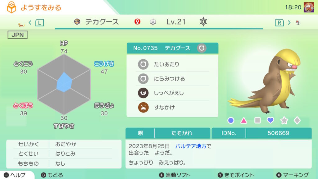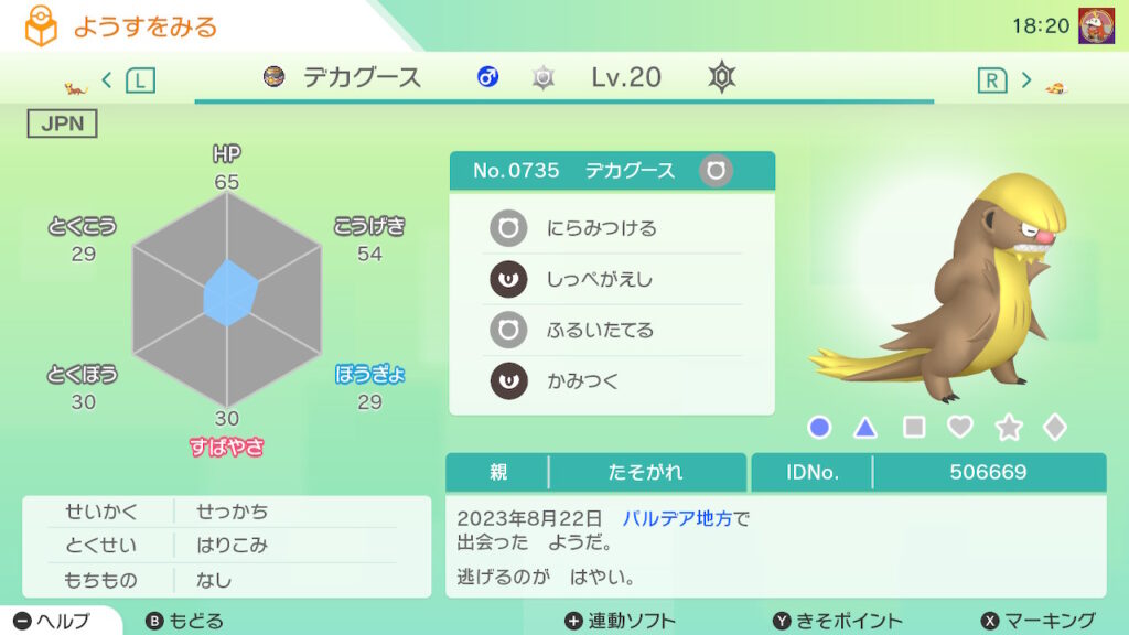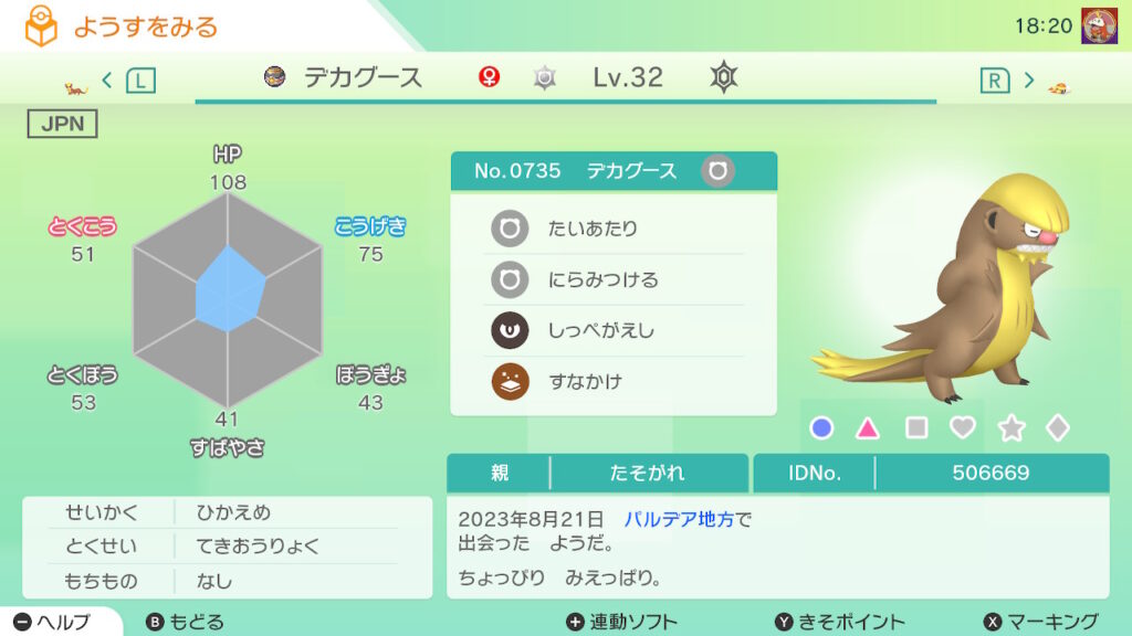 図鑑No.735 『デカグース』の色違いの見分け方をソフト別に解説