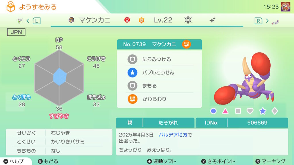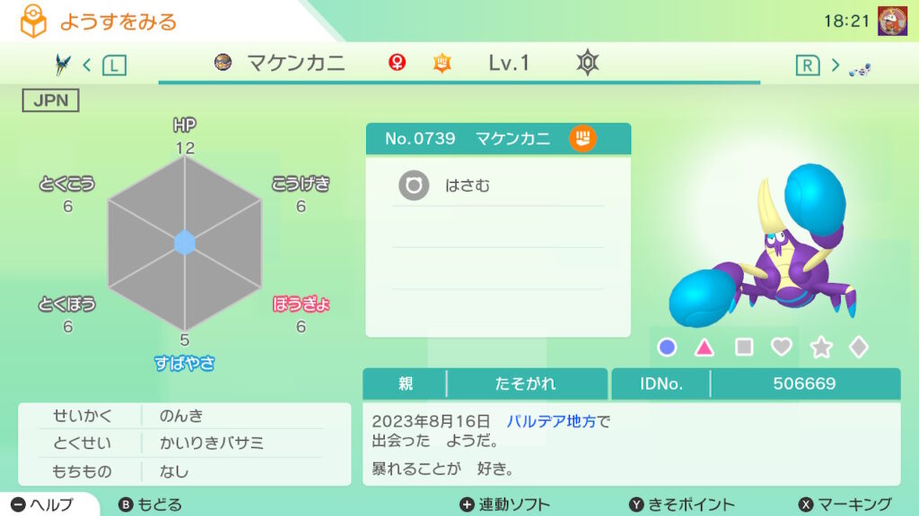 図鑑No.739 『マケンカニ』の色違いの見分け方をソフト別に解説