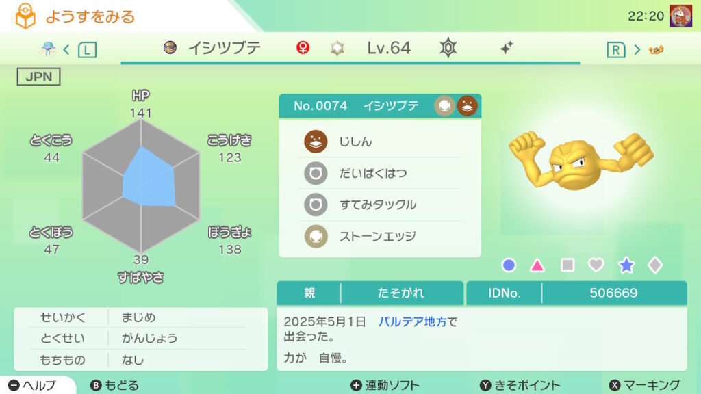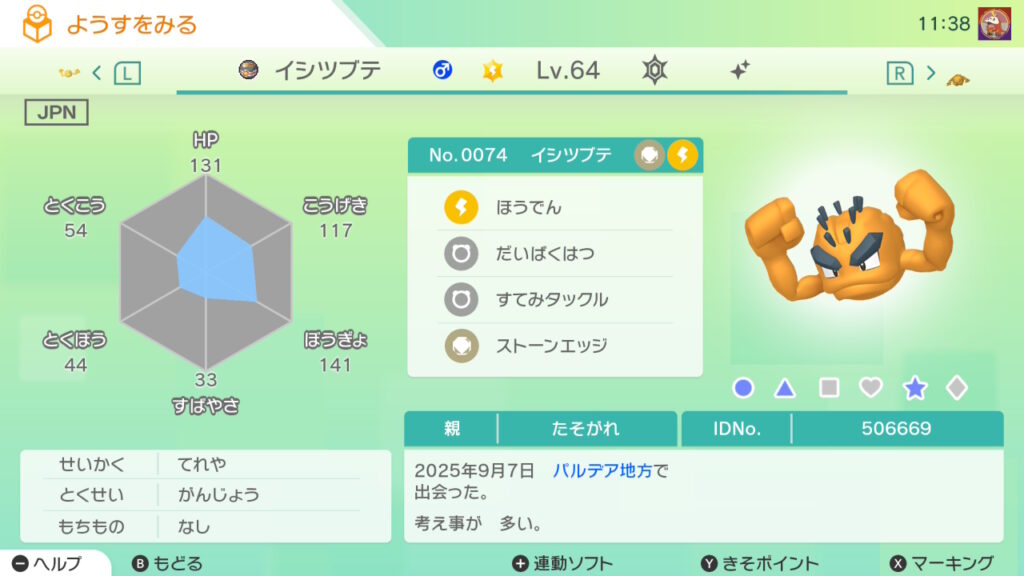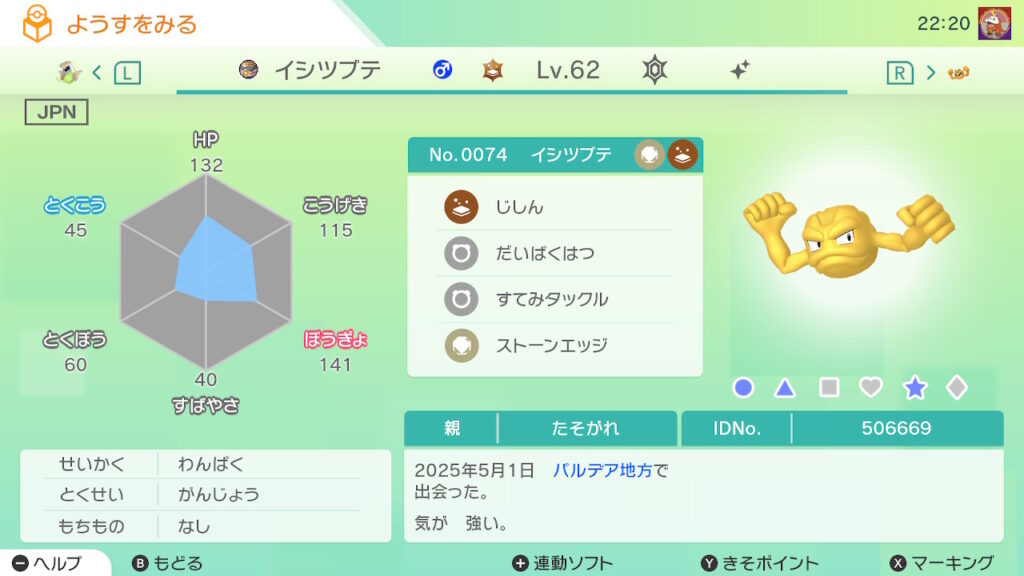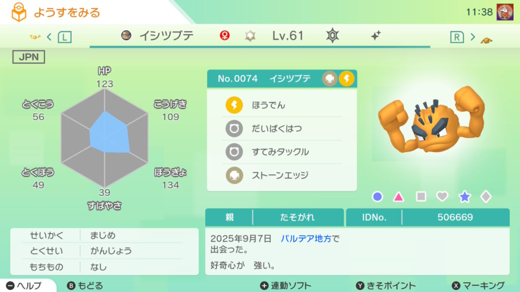 全てのゲット対象個体が”自己産かつゴージャスボール入り”の場合、達成率の横に「★」が付く。
