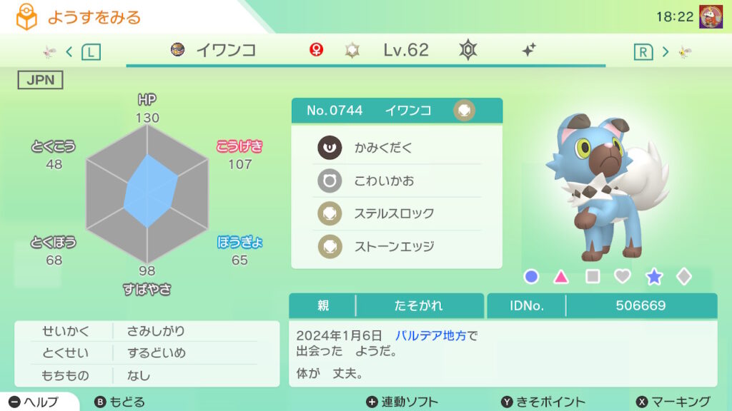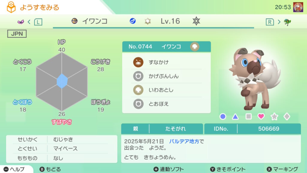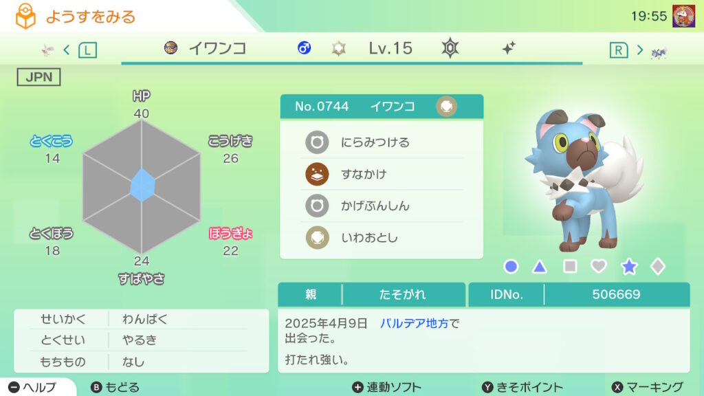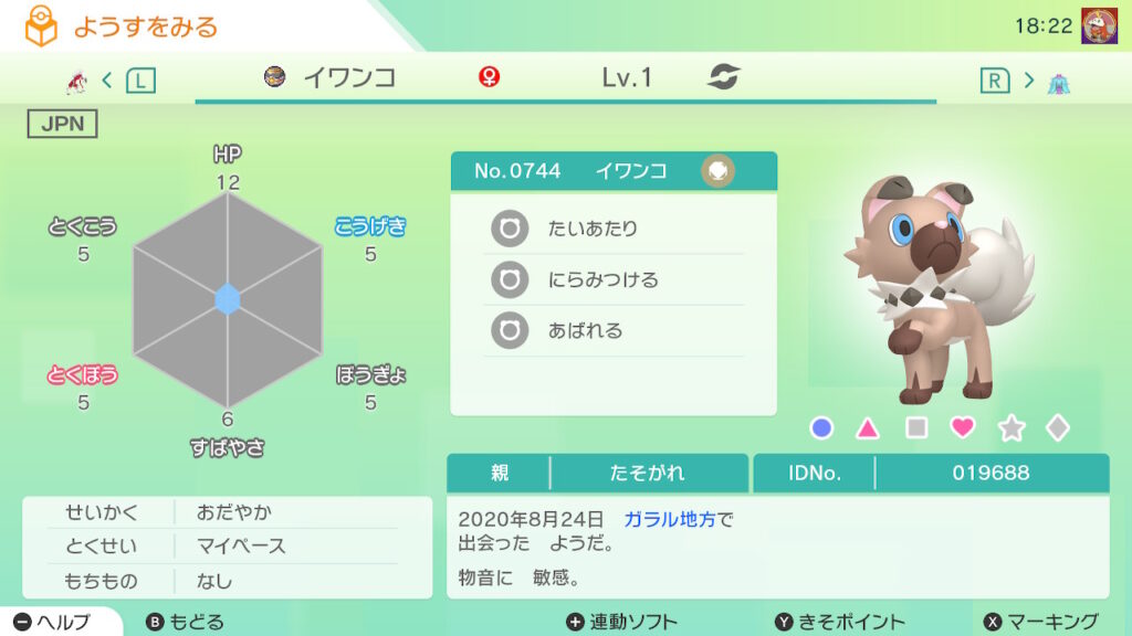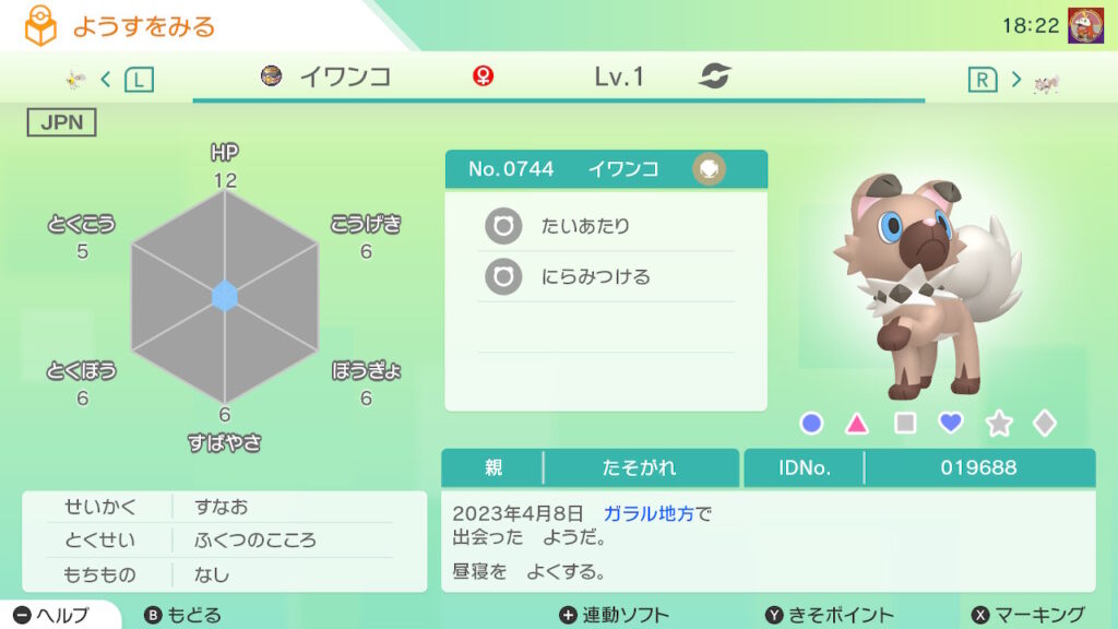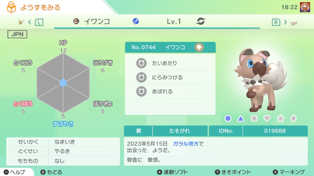 図鑑No.744 『イワンコ』の色違いの見分け方をソフト別に解説
