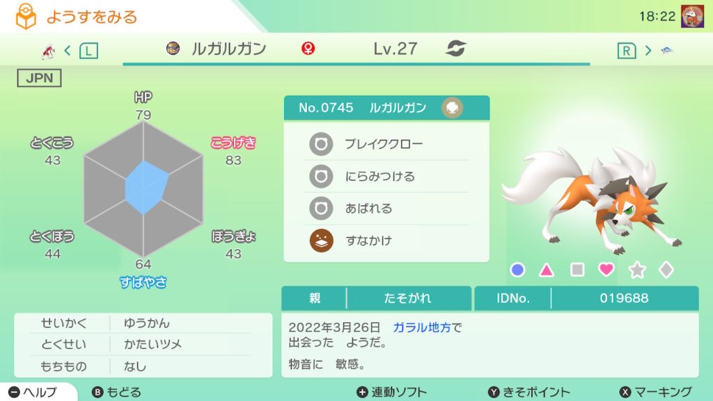 上記を3フォルム分。(たそがれのすがたは夢特性なし)