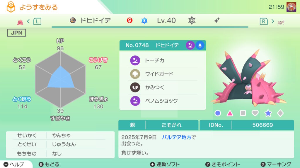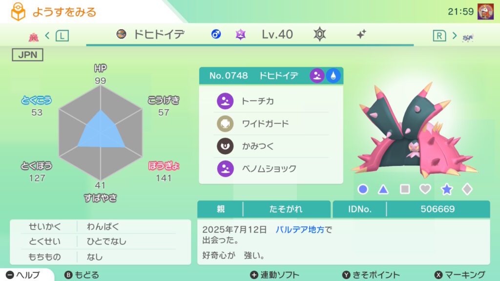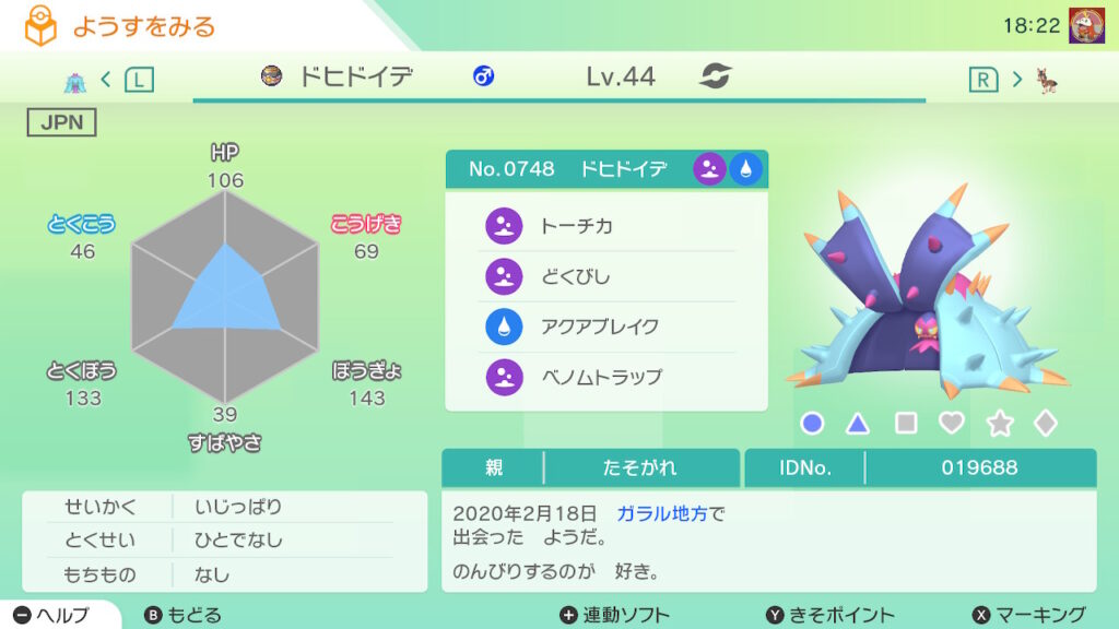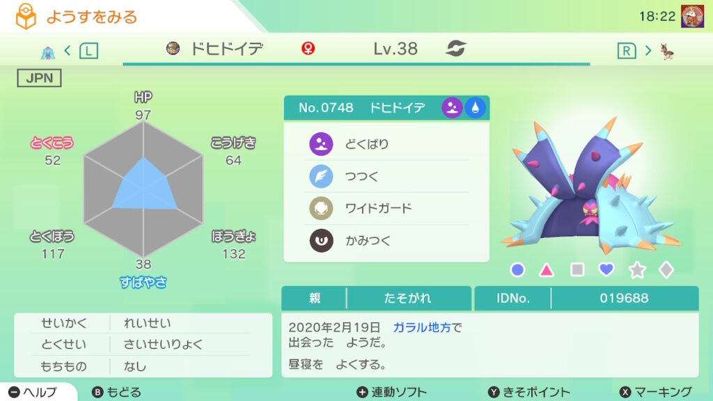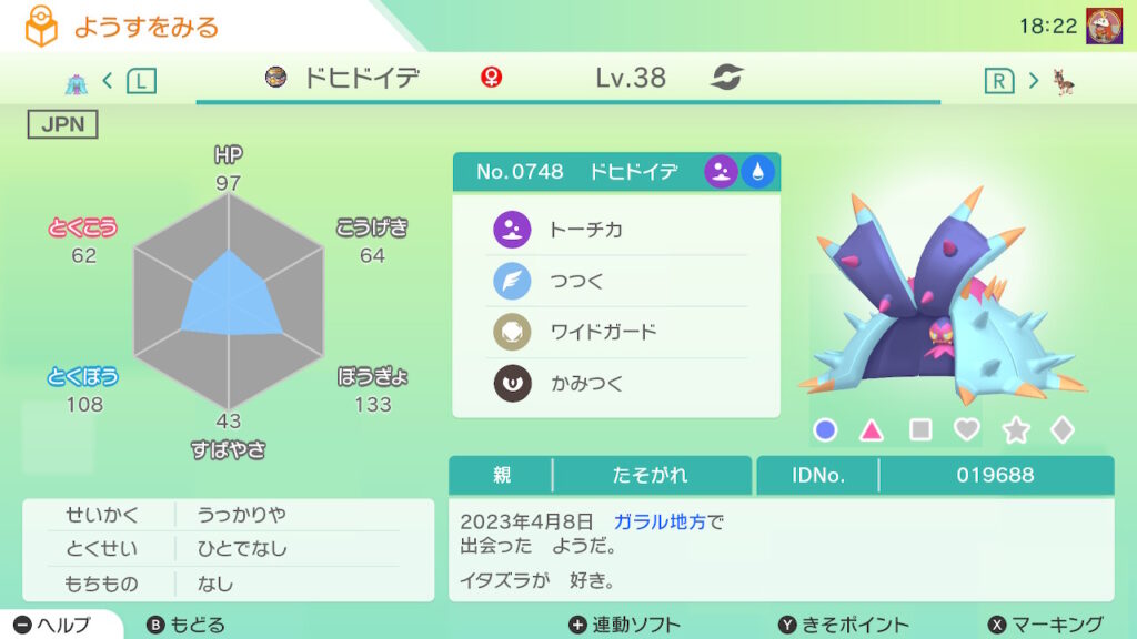 図鑑No.748 『ドヒドイデ』の色違いの見分け方をソフト別に解説