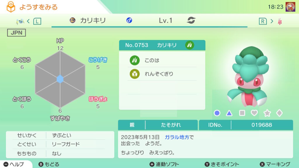 図鑑No.753 『カリキリ』の色違いの見分け方をソフト別に解説