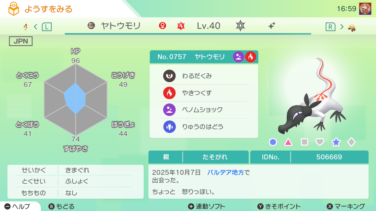 入手方法:孵化色違い(♂) 入手バージョン:SV