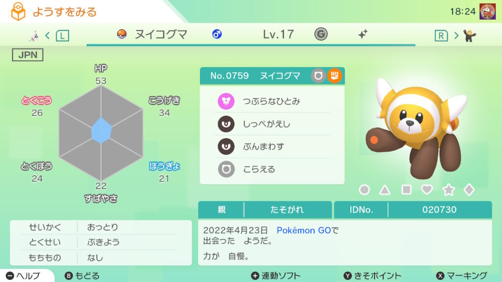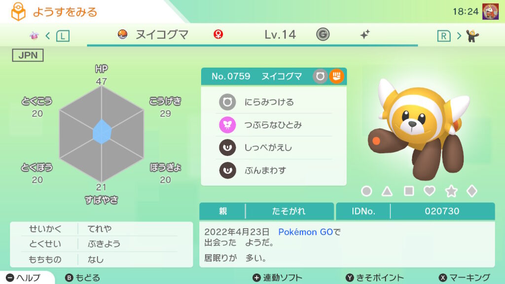- 色違い(♀)がポケモンGO産のためゴージャスボールではない。