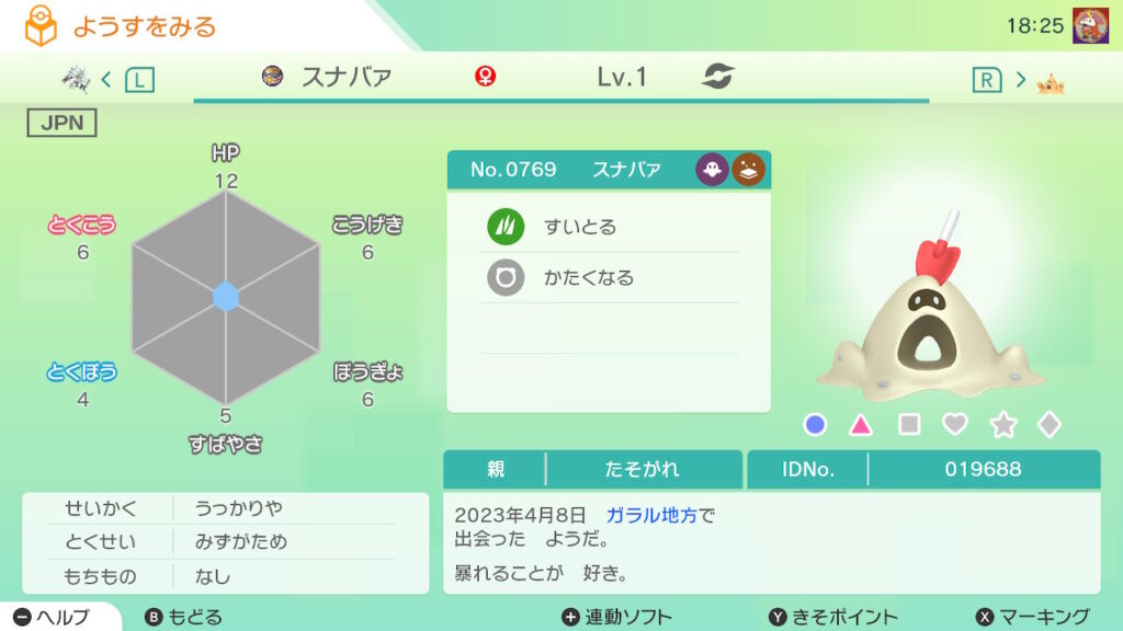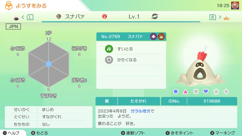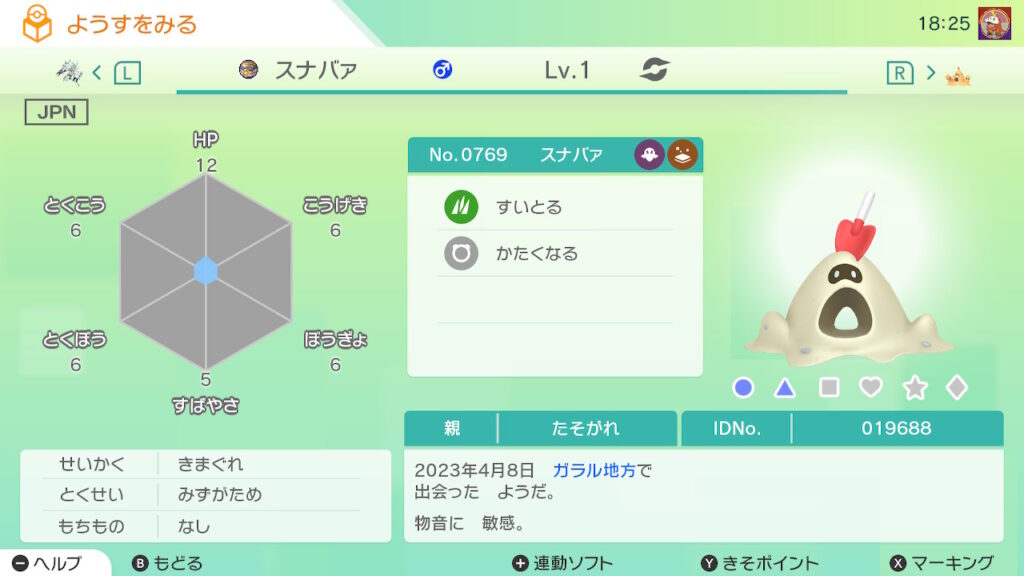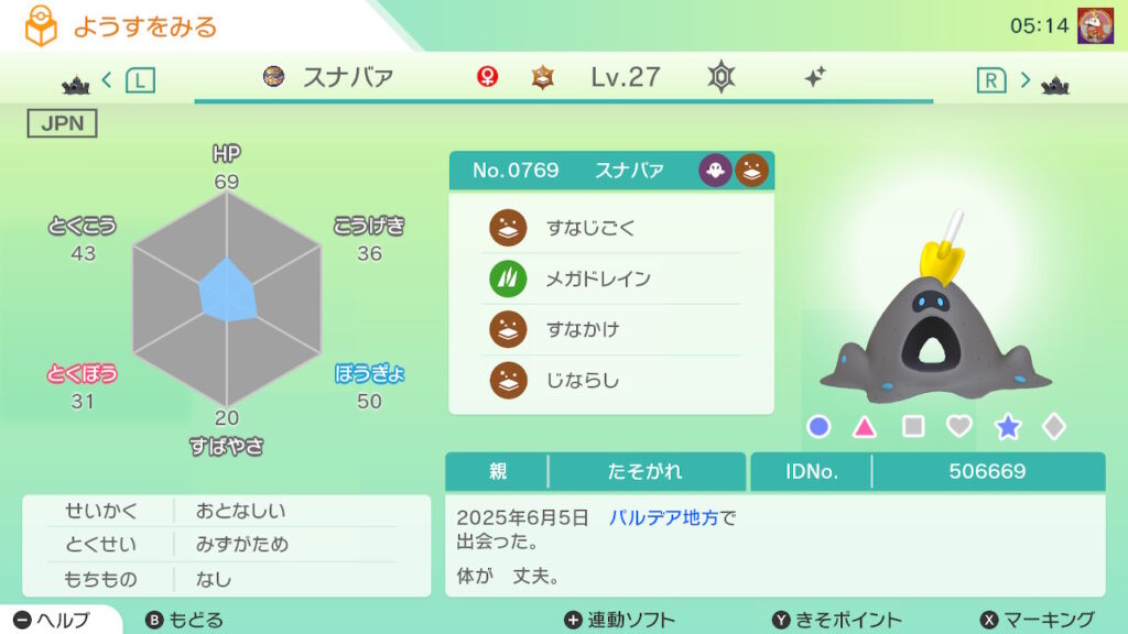 図鑑No.769 『スナバァ』の色違いの見分け方をソフト別に解説