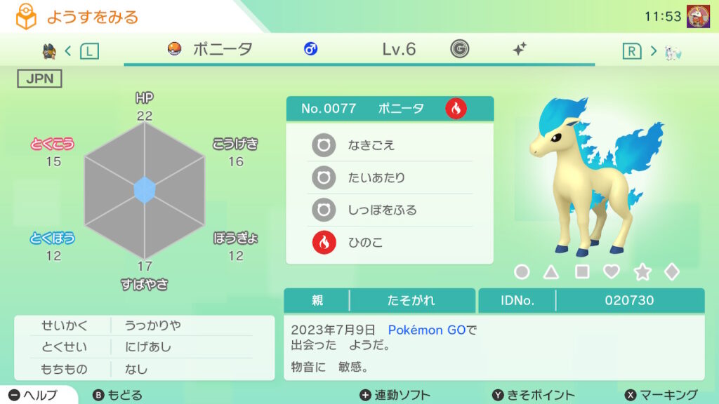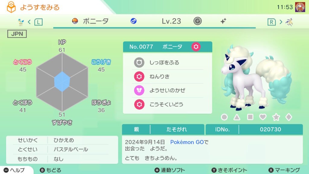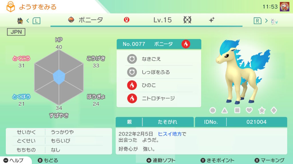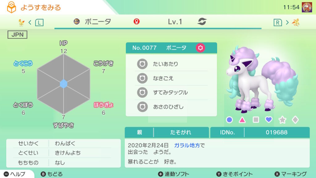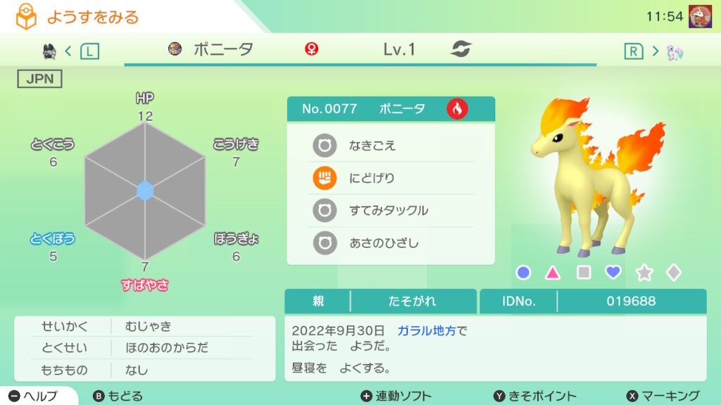 - ポニータの色違い(♀)がレジェンズアルセウス産のためゴージャスボールではない。