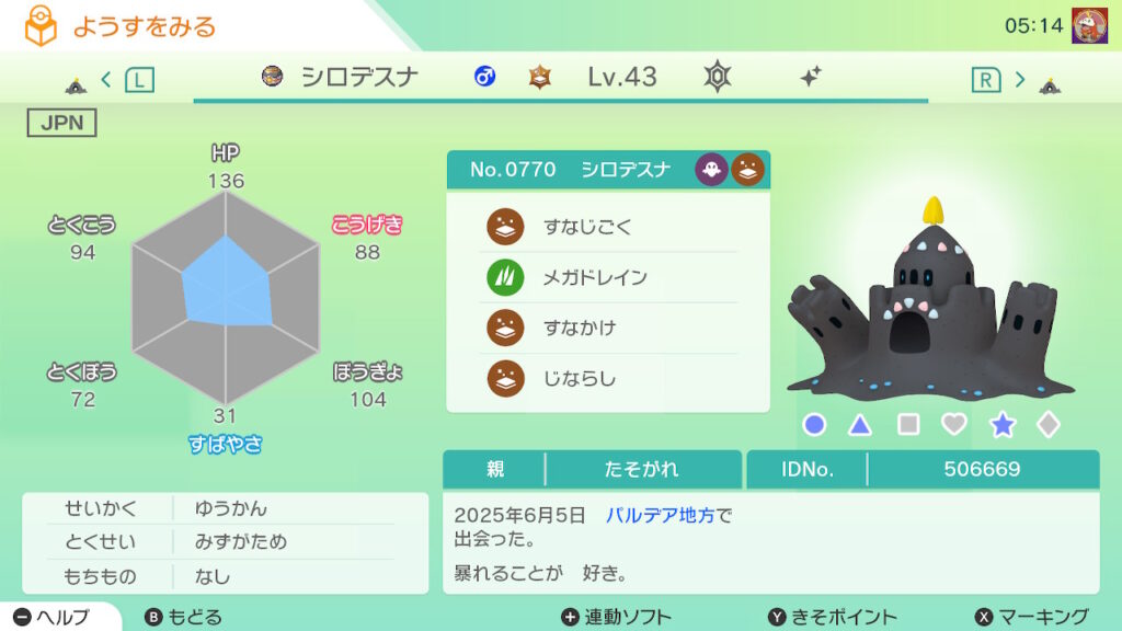 全てのゲット対象個体が”自己産かつゴージャスボール入り”の場合、達成率の横に「★」が付く。