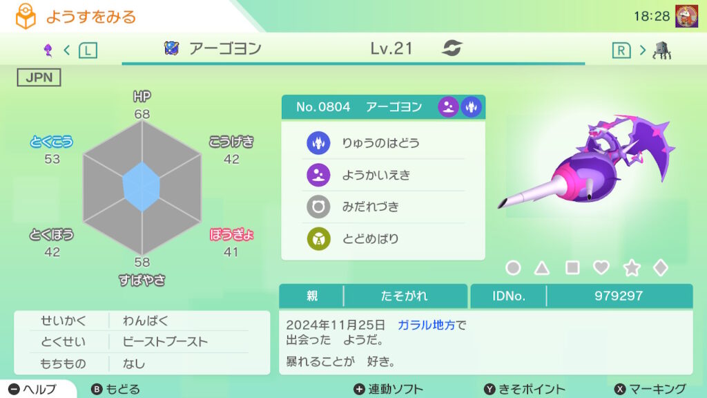 図鑑No.804 『アーゴヨン』の色違いの見分け方をソフト別に解説